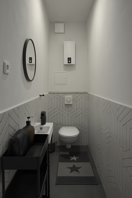 Das Apartment besticht durch eine großzügige Wohnküche sowie ein separates Schlafzimmer, das mit einer integrierten Dusche einen besonderen, hotelähnlichen Charme versprüht. Das WC ist praktisch vom Flur aus erreichbar.