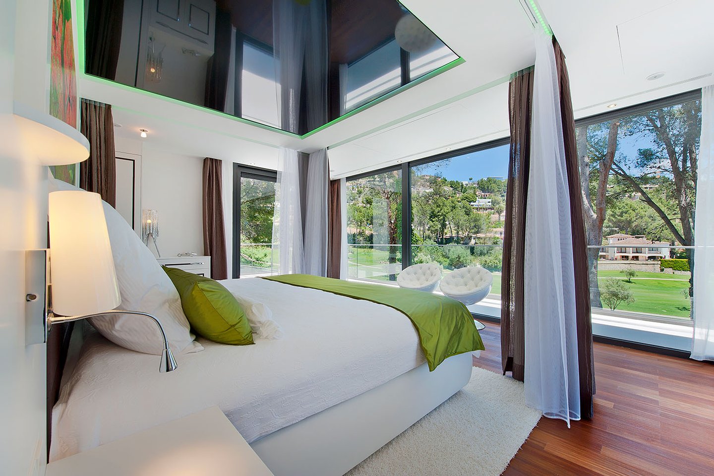 Die Villa erstreckt sich über drei Ebenen, die bequem über einen Aufzug verbunden sind. Im Obergeschoss befindet sich die geräumige Master-Suite mit einer Terrasse mit Whirlpool und Sauna sowie herrlichem Blick auf den Golfplatz. Das Untergeschoss bietet ein separates Gäste- oder Personalapartment, das alternativ als Büro, Fitness- oder SPA-Bereich genutzt werden kann.