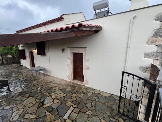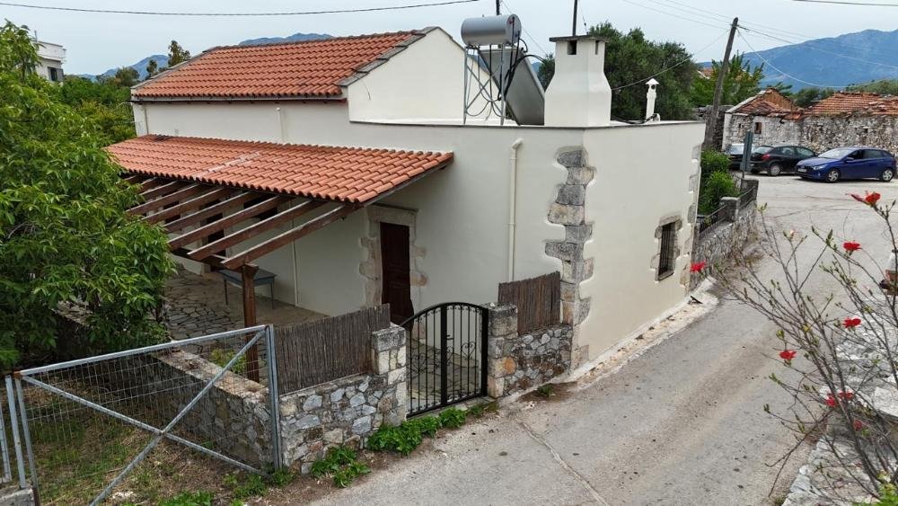 Der private Garten mit verschiedenen Obstbäumen schafft eine ruhige und natürliche Umgebung. Dieses Anwesen eignet sich hervorragend zum dauerhaften Wohnen oder als Ferienhaus und liegt in der Nähe lokaler Dienstleistungen und der Stadt Chania.