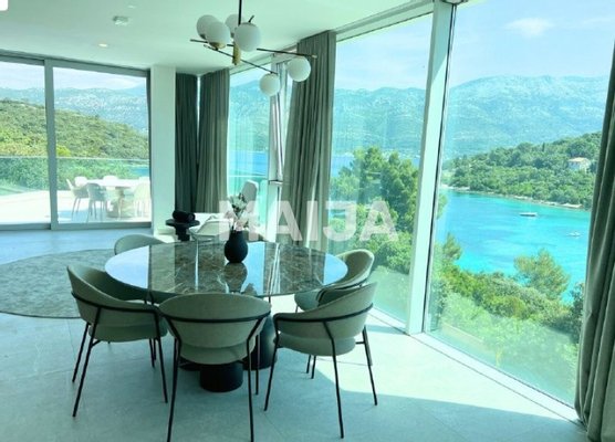 Die Villa erstreckt sich über 400 m2 auf einem beeindruckenden 2.400 m2 großen Grundstück mit Panoramablick auf den Korčula-Kanal und direktem Zugang zum kristallklaren Meer.