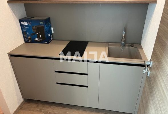 Das geräumige Wohnzimmer ist von Glaswänden umgeben, die einen unverbaubaren Meerblick bieten, während die voll ausgestattete Küche mit erstklassigen italienischen Geräten ausgestattet ist.
