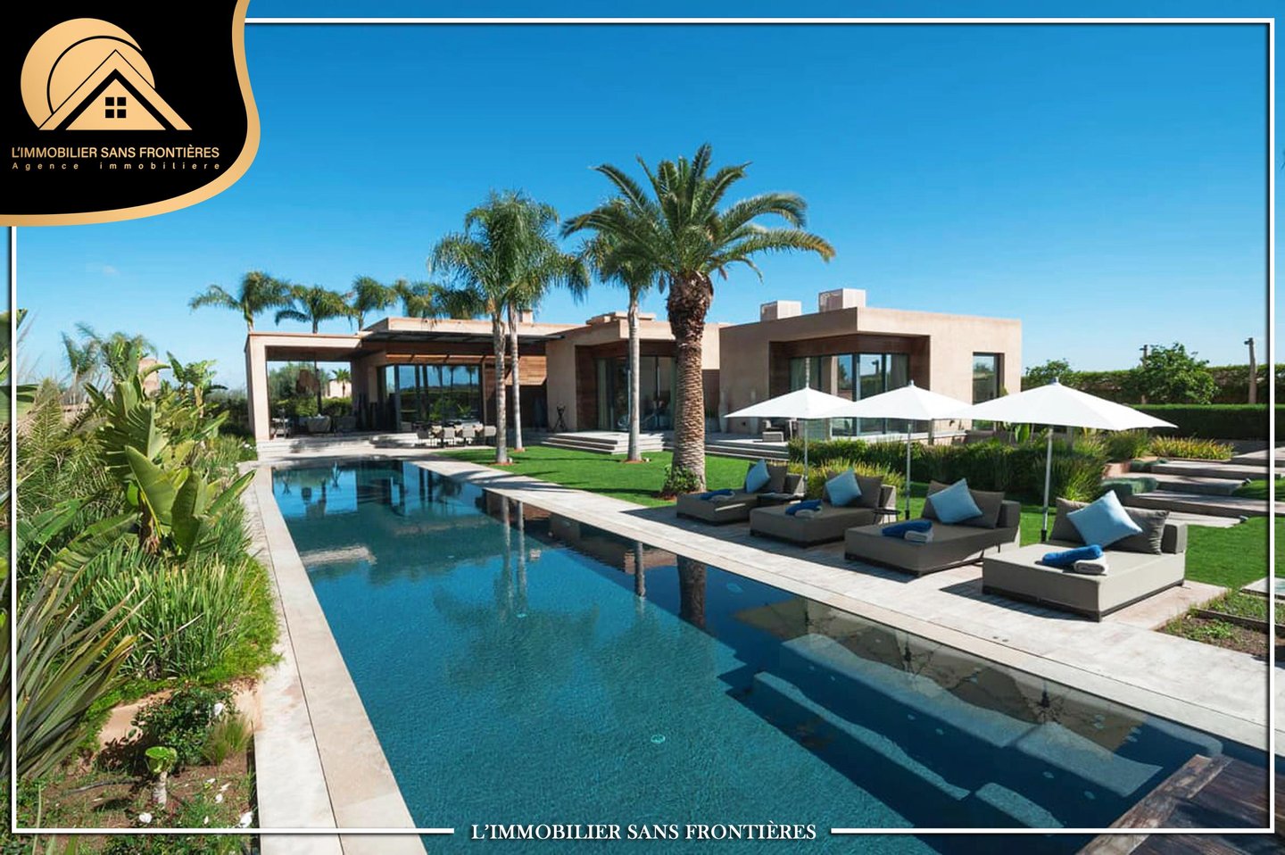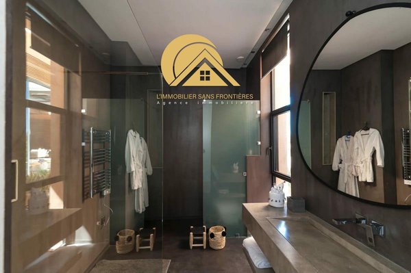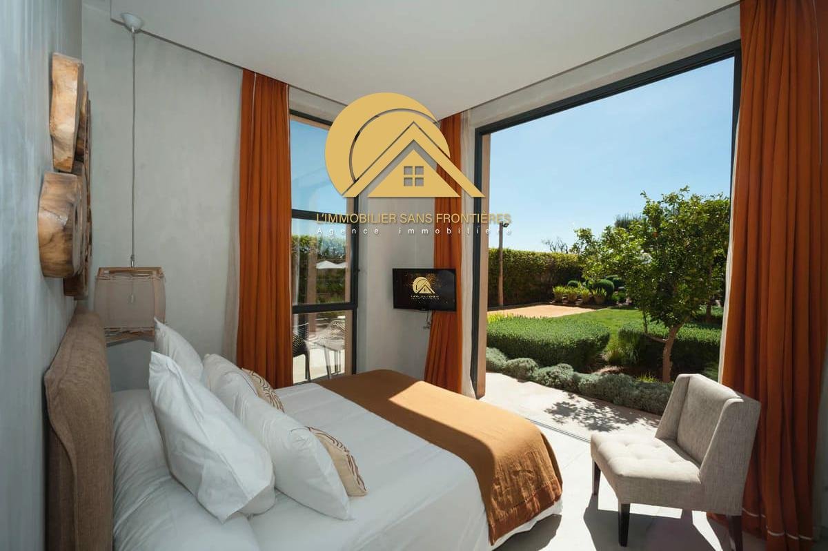 L'immobilier Sans Frontières bietet Ihnen diese sehr moderne, luxuriös eingerichtete Villa zum Verkauf brandneu in einer sicheren Residenz, mit einer Architektur von RAYMOND MAUREL und einem Innenarchitekten von Ludovic Petit, sehr hochwertigem Marmor, Beleuchtung, Rollläden, Satellitenkanälen, Glasfasern, zentraler Klimaanlage und Klimaanlage (Biomassekessel), die die Betriebskosten um mehr als 60% senkt. Sicherheit der Villa mit Alarmanlage, privatem beheiztem Pool 30 Meter lang, Garten (automatische Bewässerung), elektrische Garage, Brunnen, Aufzug, Sonnenkollektor, elektrischer Warmwasserbereiter