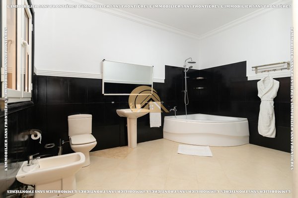 2 europäische Lounges - Kamin - Marokkanisches Wohnzimmer mit Klimaanlage - Wohnzimmer - Gäste-WC - 4 Suiten mit Schrank, Bad und Split-Klimaanlage - Terrasse