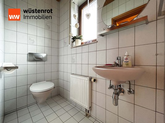 Schon beim Betreten empfängt Sie eine einladende Diele mit eingebauter Garderobe und Einbauschränken. Ihre Gäste können sich in dem Gäste-WC frisch machen.