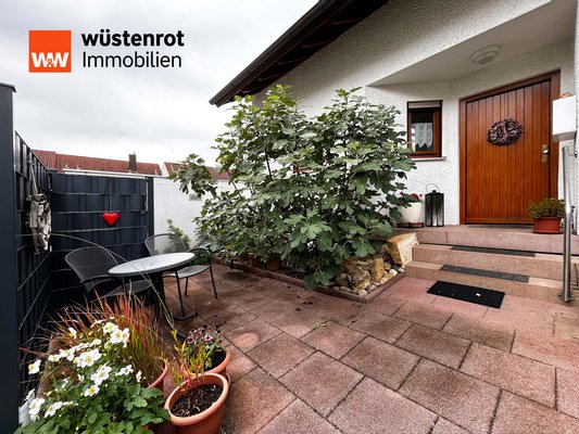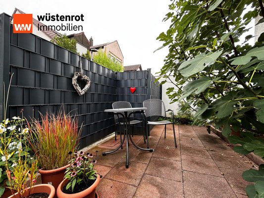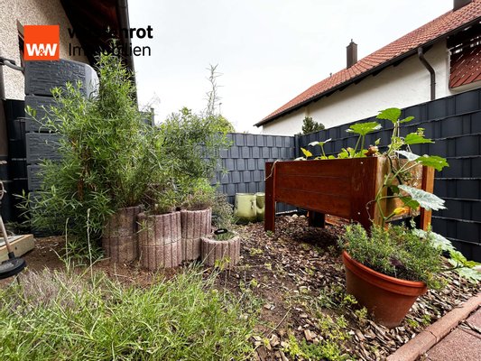 + Schöne Terrasse, Sonnenbalkon im Obergeschoss, kleiner Garten mit Hochbeeten und Garage mit Zugang vom Haus