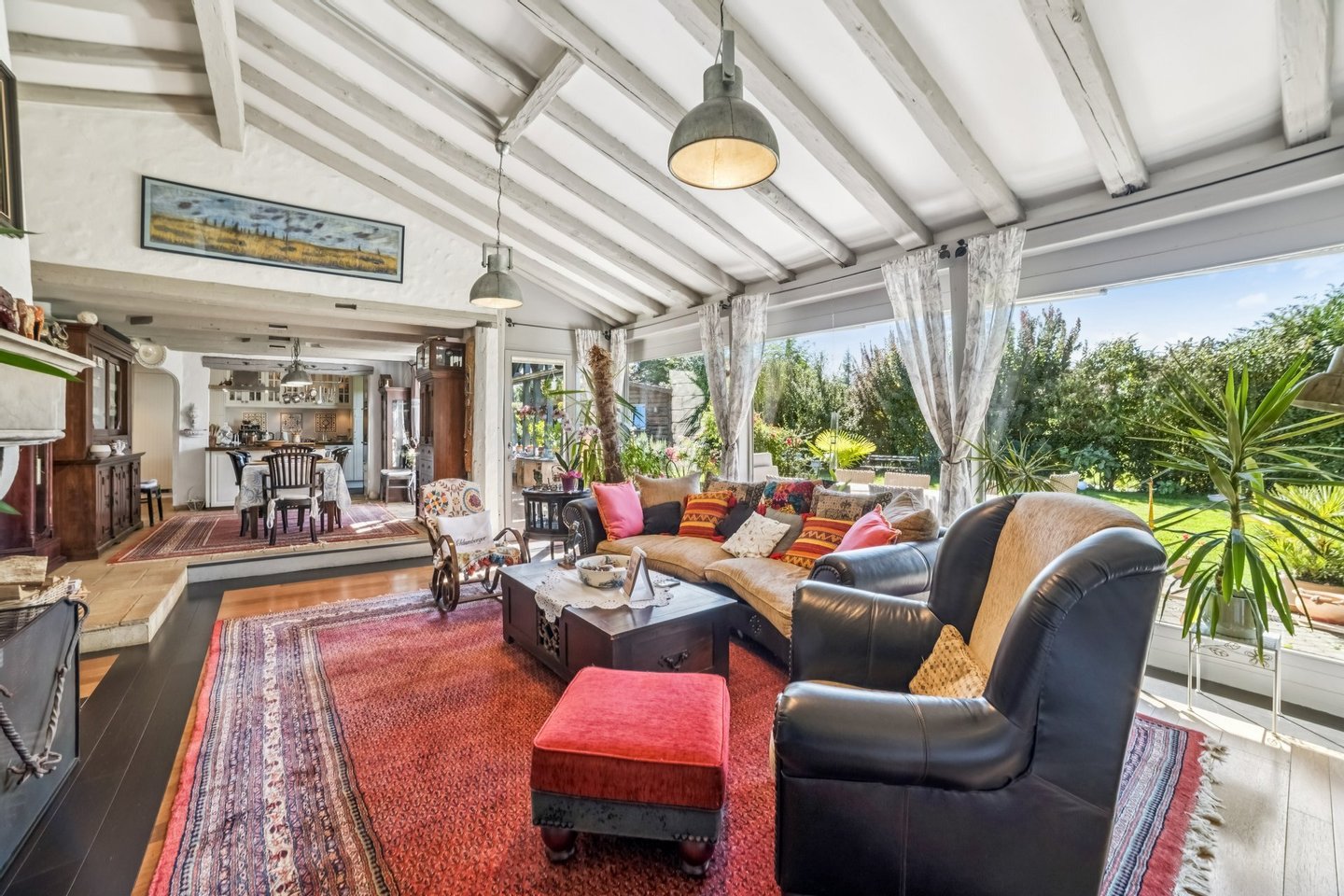 Die wunderschön angelegten Gärten sind zum Entspannen und Unterhalten gedacht. Zu den Highlights gehören ein großer Swimmingpool mit Terrasse, Whirlpool, Sauna und mehrere Terrassen und Sitzbereiche, die dazu einladen, die ruhige Umgebung zu genießen. Der weitläufige Garten bietet viel Platz für Erholung oder zusätzliche Landschaftsgestaltungsprojekte. Das Parken ist bequem und sicher, mit einem Carport für zwei Fahrzeuge und zwei zusätzlichen Außenbereichen.