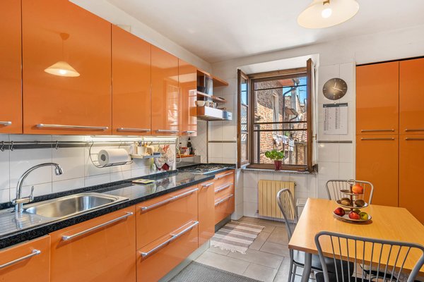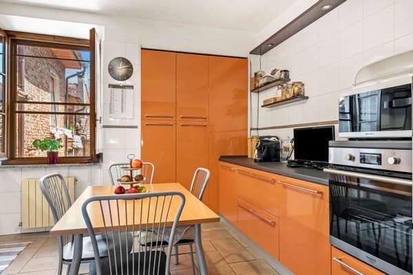 Typ: Wohnung im 2. Stock, auf drei Ebenen von ca. 240 qm + Terrasse von ca. 20 qm + Keller von ca. 20 qm im Erdgeschoss. Das Gebäude besteht aus insgesamt 8 Wohnungen und 3 Fonds/Geschäften