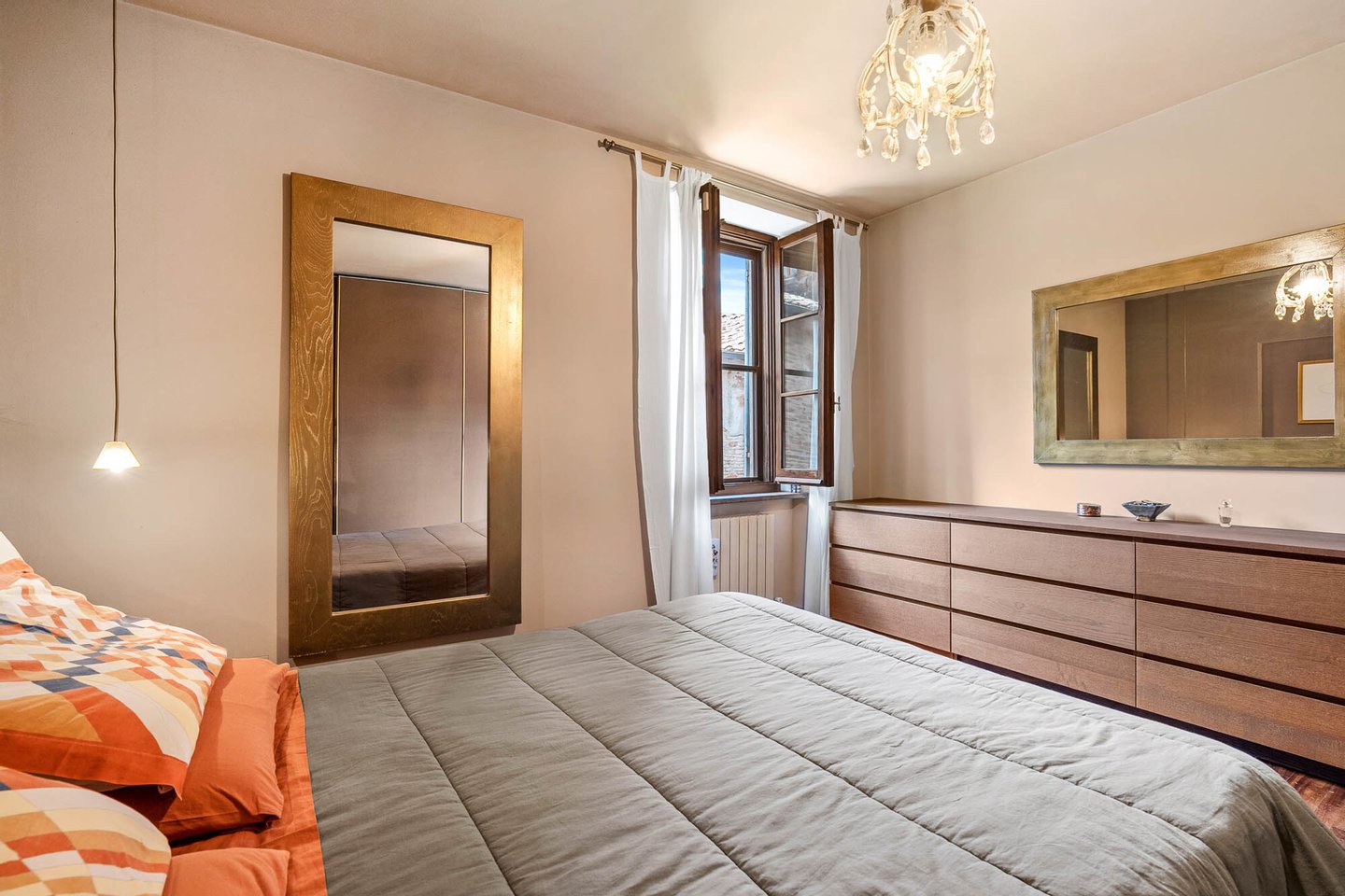 Im historischen Zentrum mit Terrasse und Keller, mehrstöckige Wohnung mit 4 Zimmern zu verkaufen in Città della Pieve, Perugia. Città della Pieve ist eine der schönsten mittelalterlichen Städte in Umbrien, bekannt für seine Veranstaltungen wie der Palio dei Terzieri und die Infiorata. Sie liegt auf einem Hügel mit Blick auf das Valdichiana und den Trasimeno-See, in strategisch günstiger Lage, denn der nächste Bahnhof ist nur 8 km entfernt, Chiusi-Chianciano Terme, und die Autobahnausfahrt Rom-Florenz ist 12 km entfernt. In einer der engen und charakteristischen Straßen des Ortes, im Herzen des Dorfes, in einem alten historischen Gebäude mit einer Wohnanlage mit acht Wohnungen gelegen, besteht die Immobilie aus einer besonderen Wohnung auf drei Ebenen mit einer herrlichen Panoramaterrasse im vierten und letzten Stock, die in den 1990er Jahren elegant mit Terrakotta- und Parkettböden renoviert wurde. Im zweiten Stock befinden sich der Eingangsbereich und ein Wohnzimmer mit Kamin, das auf die Hauptstraße von Città della Pieve blickt, sowie eine Küche mit Essbereich, ein Arbeitszimmer, ein Bad und ein Doppelzimmer mit Bad. Die dritte Etage beherbergt zwei Doppelschlafzimmer, ein Bad und ein charakteristisches helles Dachgeschoss, das als Wohnbereich mit Kamin und zweiter Küche eingerichtet ist. Über die zentrale Treppe gelangt man in die oberste Etage mit Zugang zu einem Dachgeschoss mit Bad und Zugang zur Terrasse, dem Schmuckstück des gesamten Anwesens, mit einer sehr eindrucksvollen Aussicht und ideal zum Entspannen und Essen im Freien. Im Erdgeschoss, neben dem Haupteingang, befindet sich ein Keller von etwa 20 Quadratmetern. Ein Anwesen, das sofort bewohnt werden kann und sich dank seiner strategischen Lage im historischen Zentrum eines der interessantesten Dörfer Mittelitaliens sowohl als privater Wohnsitz als auch als Touristenunterkunft anbietet.