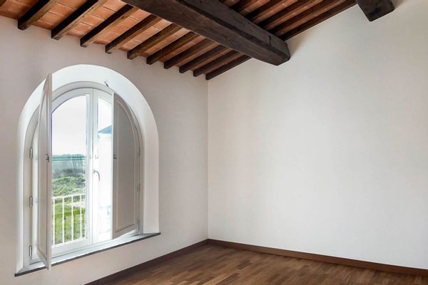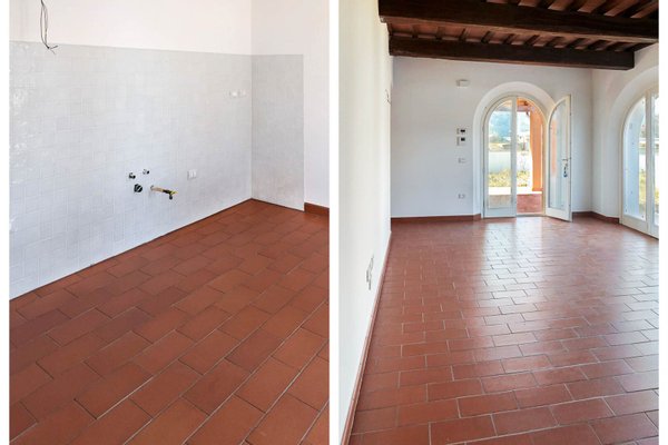 Auf zwei Etagen im rustikalen toskanischen Stil mit Veranda, drei Schlafzimmer und Studio, Photovoltaik, Klasse A4, Garten und Garage zu verkaufen in Calcinaia, Pisa. Innerhalb eines landwirtschaftlichen Anwesens, umgeben von bewirtschafteten Feldern bis zu den Ufern des Arno, eine Wohnanlage im bäuerlichen und dörflichen Stil, mit Ein- und Zweifamilienhäusern, alle mit Gärten und eigenem Zugang, in einer Anlage, die kurz vor der Fertigstellung steht, mit öffentlichen Plätzen und Gärten, einem Wäldchen, Sportwegen und einem Fahrradweg, der ins Stadtzentrum führt. Die letzten beiden Einheiten sind bereits fertiggestellt und mit neuen energiesparenden Systemen ausgestattet, darunter eine Photovoltaikanlage auf dem Dach, eine Fußbodenheizung und die Energieklasse A4. Die Typologie ist eine zweigeschossige Erdgeschosseinheit, die auf drei Seiten frei ist und einen Eingang vom Garten aus auf einen über 50 Quadratmeter großen Laubengang bietet. Die Fassaden sind in den Farben von Terra di Siena verputzt und mit Ziegeln und Katzensprung ausgeführt, die Innenräume haben Decken mit Massivholzbalken und Terrakotta-Ziegeln. Die modernen und eleganten Rundbogentüren aus hellem Holz mit doppeltem Thermoglas und Fensterläden führen in den individuell gestaltbaren Wohnbereich im Erdgeschoss, der aus einem Wohnzimmer mit Kamin, einer Essküche, einem Arbeitszimmer und einem Bad mit Dusche und Fenster besteht. Alle Böden des Erdgeschosses sind mit Terrakottafliesen belegt, während die Treppe zum Obergeschoss mit dunklem Stein belegt ist. Im ersten Stock befinden sich drei Schlafzimmer, zwei Doppel- und ein Einzelzimmer, alle mit Parkettboden, sowie ein Bad mit Wanne und Fenster. Vor dem Eingang befindet sich ein separates Gebäude im Stil einer Scheune mit typischen Terrakottaböden an den Wänden, das als Garage genutzt wird und über einen doppelten Zugang verfügt, sowohl von der Straße aus mit einem Schwingtor als auch vom Garten aus. Calcinaia ist unter zwei Namen bekannt, deren Ursprünge mit der lokalen Handwerkskunst verbunden sind, die sich im Laufe der Jahrhunderte entwickelt hat. Vico Vitri, weil hier seit dem Jahr 1000 verglastes Geschirr hergestellt wird, und Calcinaia, weil es hier viele Kalköfen gibt, die seit dem 17. Heute sind viele dieser Brennöfen und Bauernhöfe in herrliche Wohnkomplexe umgewandelt worden, die den typisch toskanischen Stil mit modernem Komfort bewahren, eine ideale Wahl, um in der Nähe der Stadt zu leben, ohne auf den Lebensstil unter freiem Himmel, viel Platz und geringen Energieverbrauch zu verzichten.