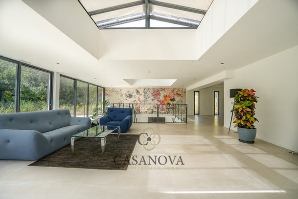 Co-Exklusivität CASANOVA - Nördlich von Montpellier, in der beliebten Stadt Montferrier sur Lez, elegantes Anwesen von 540m² im prestigeträchtigen Viertel La Devèze. Zeitgenössische Villa mit 425 m² Wohnfläche, die 2021 erbaut wurde und von einem Garten von mehr als 5200 m² ohne Vis-à-Vis, ohne Belästigung und umgeben von einem Pinienwald umgeben ist. Im Erdgeschoss: eine Eingangshalle mit Garderobe, ein Doppelwohnzimmer von 240 m², eine sehr hochwertige Einbauküche (eingebauter Weinkeller...), 6 Schlafzimmer, 4 Badezimmer, 1 Büro. Garage von 61 m² mit zwei Parkplätzen und angrenzender Waschküche. Im ersten Stock: eine 62 m² große Master-Suite mit einem unabhängigen Büro, einem Ankleidezimmer, einem großen Schlafzimmer und einem separaten Duschbad. Im Untergeschoss: 34 m² Weinkeller und Waschküche mit Oberlicht mit Blick nach draußen. Dienstleistungen: Fußbodenheizung und -kühlung, umschaltbare Klimaanlage, automatische Rollläden und hochwertige BSO-Außenjalousien, Aluminiumschreinerei... Immobilie soll fertiggestellt und aufgewertet werden: Der Garten soll angelegt werden, ein Swimmingpool kann nach einigen Änderungen der bestehenden Villa installiert werden, die Flachdächer können umgebaut/zugänglich gemacht werden und bleiben möglichen Erweiterungen vorbehalten. Auf der anderen Seite sind die Innenräume in neuem Zustand. Kontaktieren Sie uns. Nur 8 Minuten von Montpellier, 34 Minuten von den Stränden, 20 Minuten von Bahnhöfen, 25 Minuten vom Flughafen Montpellier Méditerranée und ganz in der Nähe aller Annehmlichkeiten. Holen Sie sich die vollständige Akte und weitere Informationen von Ihrem engagierten Vertreter, Alexandre VOLANTE (Handelsvertreter - R.S.A.C n° 819 481 086 Montpellier). Direkter Kontakt unter 06 41 34 67 77, 7 Tage die Woche und 24 Stunden am Tag erreichbar. Informationen zu den Risiken, denen diese Immobilie ausgesetzt ist, finden Sie auf der Website von Géorisques: www.georisques.gouv.fr.