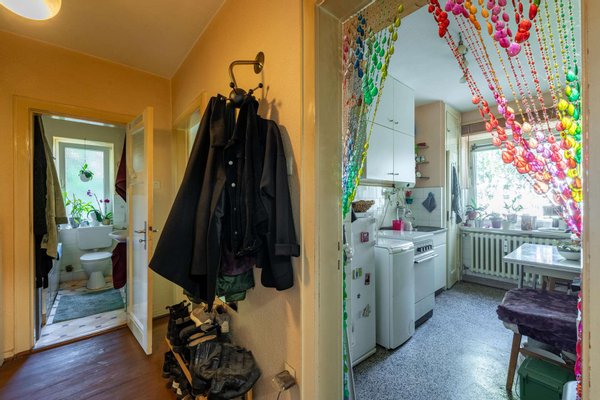 Der kurze Wohnungsflur verbindet alle Zimmer, gegen den Uhrzeigersinn folgend betreten Sie zuerst die Küche, daran anschließend das Schlafzimmer, das Badezimmer und zuletzt das Wohnzimmer mit Zugang zum Balkon.