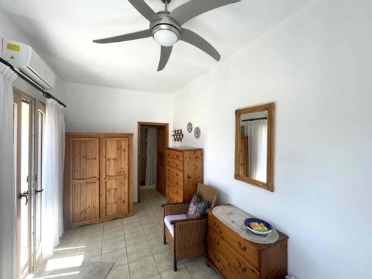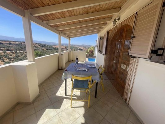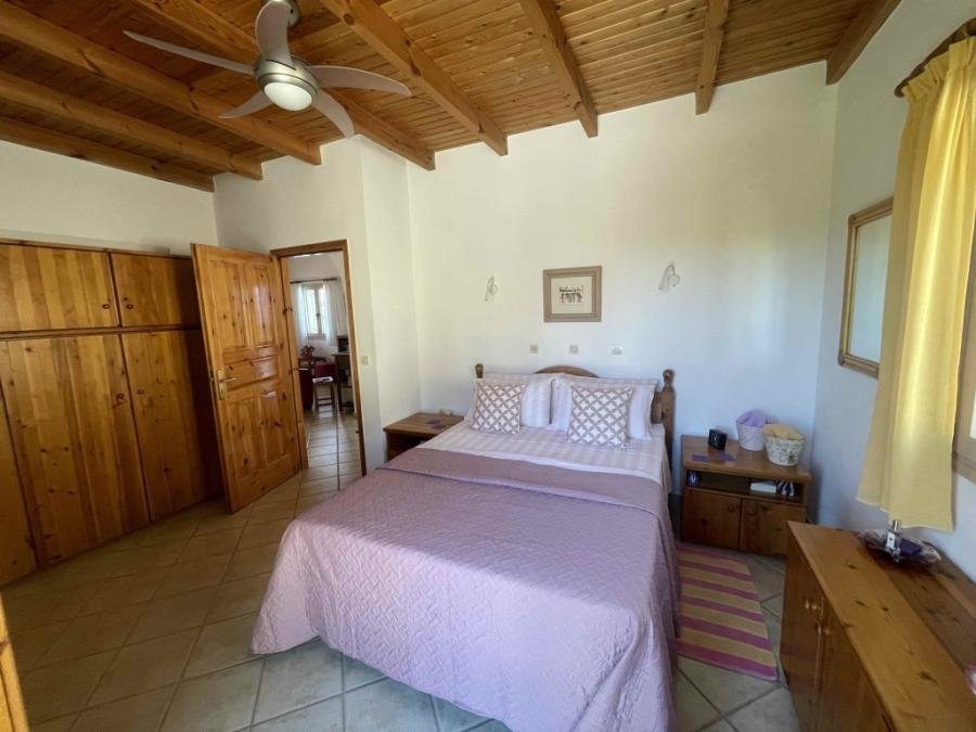 Die Villa verfügt über drei Schlafzimmer und zwei Badezimmer. Eines der Schlafzimmer ist als separate Gästesuite mit eigenem Eingang und eigenem Bad konzipiert – ideal für Besucher oder Familien, die Wert auf zusätzliche Privatsphäre legen. Im Außenbereich bietet das Anwesen einen bezaubernden Garten, großzügige Terrassen für Mahlzeiten im Freien und einen privaten 32 m² großen Pool – der ideale Ort zum Entspannen und Genießen unter der kretischen Sonne.