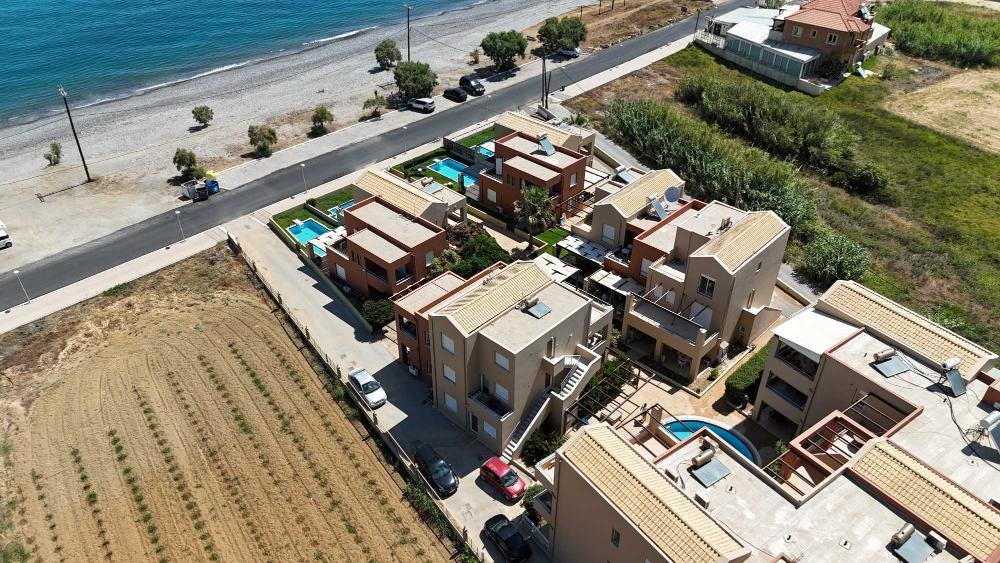 Diese Villa in erster Meereslinie steht in Maleme bei Chania auf Kreta zum Verkauf. Sie ist Teil einer kleinen Wohnanlage mit 24 Wohneinheiten direkt am Strand des Dorfes Maleme in der Region Platanias, nur 17 km westlich von Chania. Die Gesamtfläche