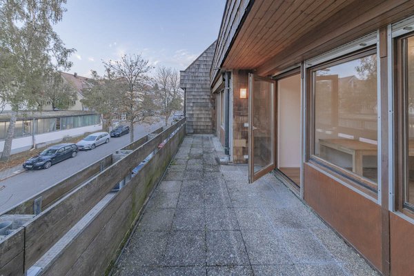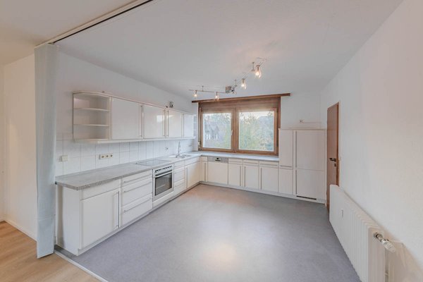 Ein großer Sonnenbalkon und eine helle Küche sind vorhanden.