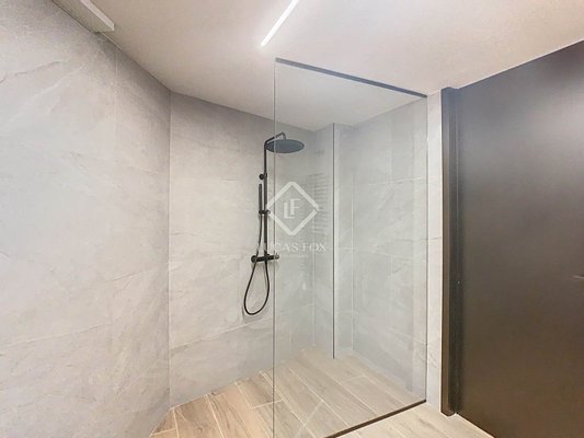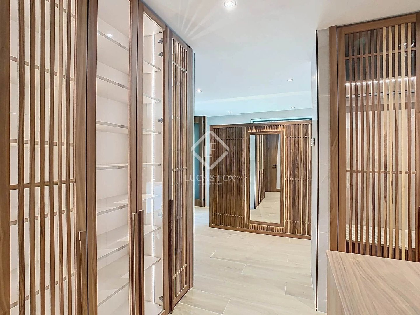 Wir betreten das Anwesen durch eine geräumige Eingangshalle, die direkt mit der privaten Garage verbunden ist, die Platz für fünf Autos bietet. An einem Ende der Garage befindet sich der 28 m² große Wellnessbereich, der einen integrierten Fitnessraum, eine Trockensauna und ein komplettes Badezimmer umfasst. Von derselben Eingangshalle aus hat man auch Zugang zu einem großen Hauswirtschaftsraum.