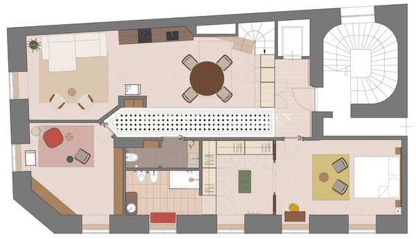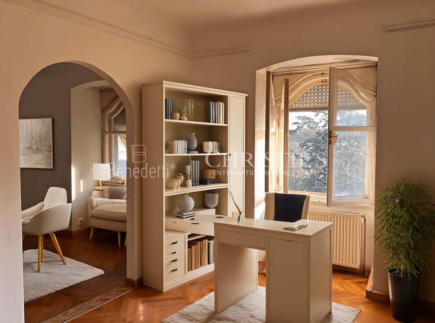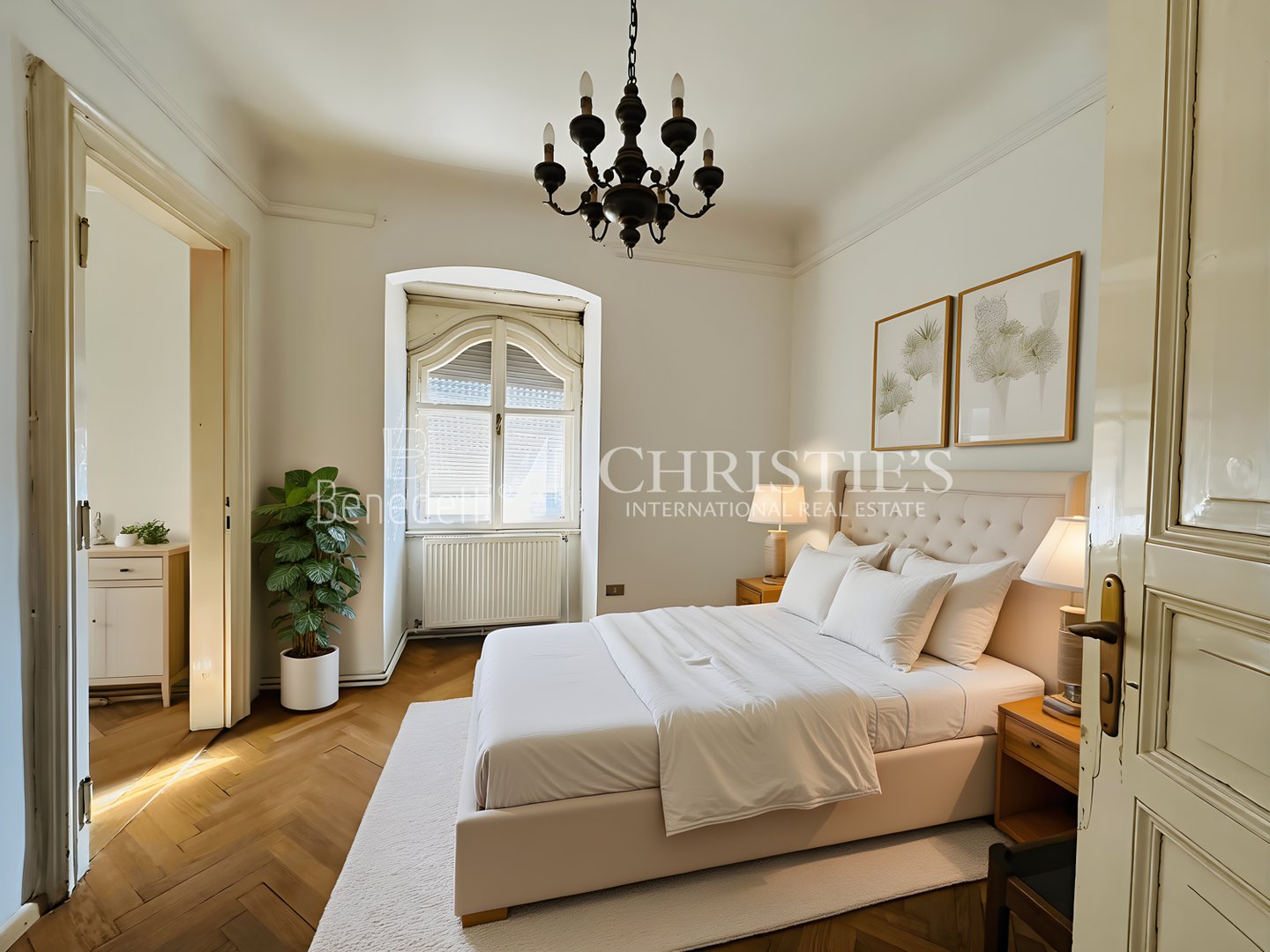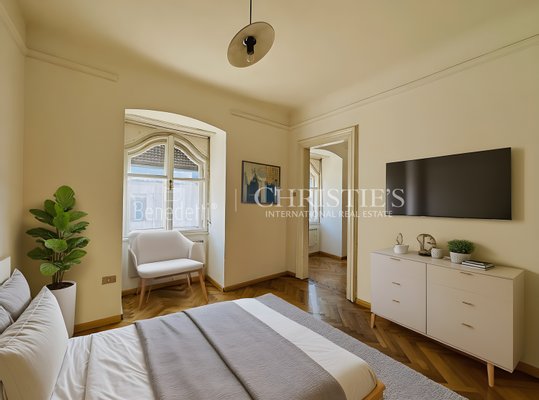 Die Wohnung zeichnet sich durch ihren historischen Charme und die unverwechselbare Atmosphäre im Liberty-Stil aus. Charakteristische Fenster, eine interessante Grundstruktur sowie weite Ausblicke über die Dächer Merans bis hin zur umliegenden Bergwelt verleihen ihr eine außergewöhnliche Ausstrahlung.