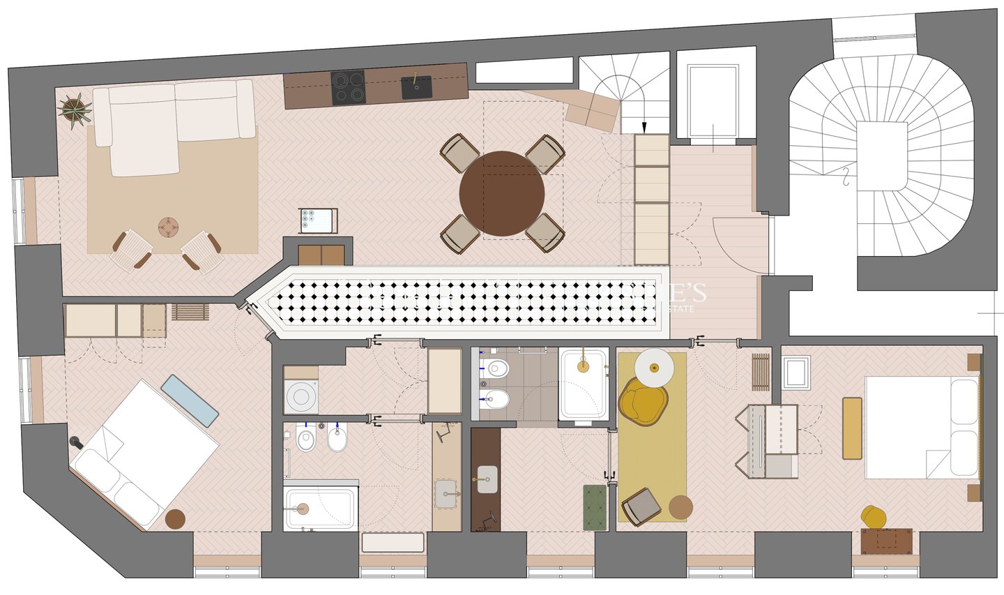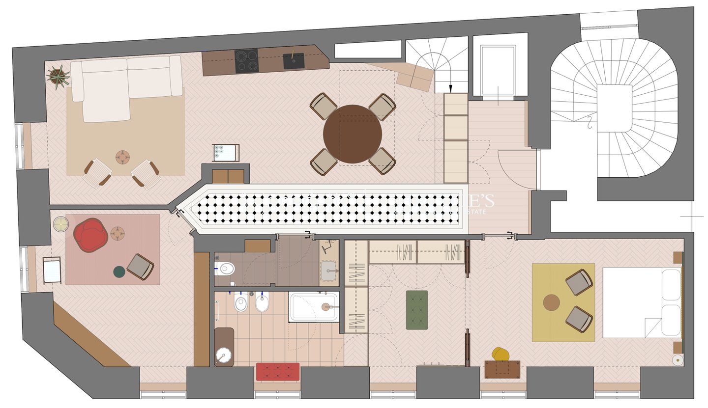 Die Liegenschaft wird in ihrem derzeitigen, leeren Zustand übergeben und erfordert eine vollständige Renovierung. Für künftige Eigentümer eröffnet sich damit die Chance, das Objekt nach ganz persönlichen Vorstellungen zu gestalten. Besonders reizvoll ist die interne Treppe, die auf eine kleine private Dachterrasse führt. Von hier gelangt man in einen zusätzlichen Raum im Dachgeschoss, der sich hervorragend als Rückzugsort eignet – sei es für entspannte Stunden im Sommer oder gemütliche Abende in den Wintermonaten.