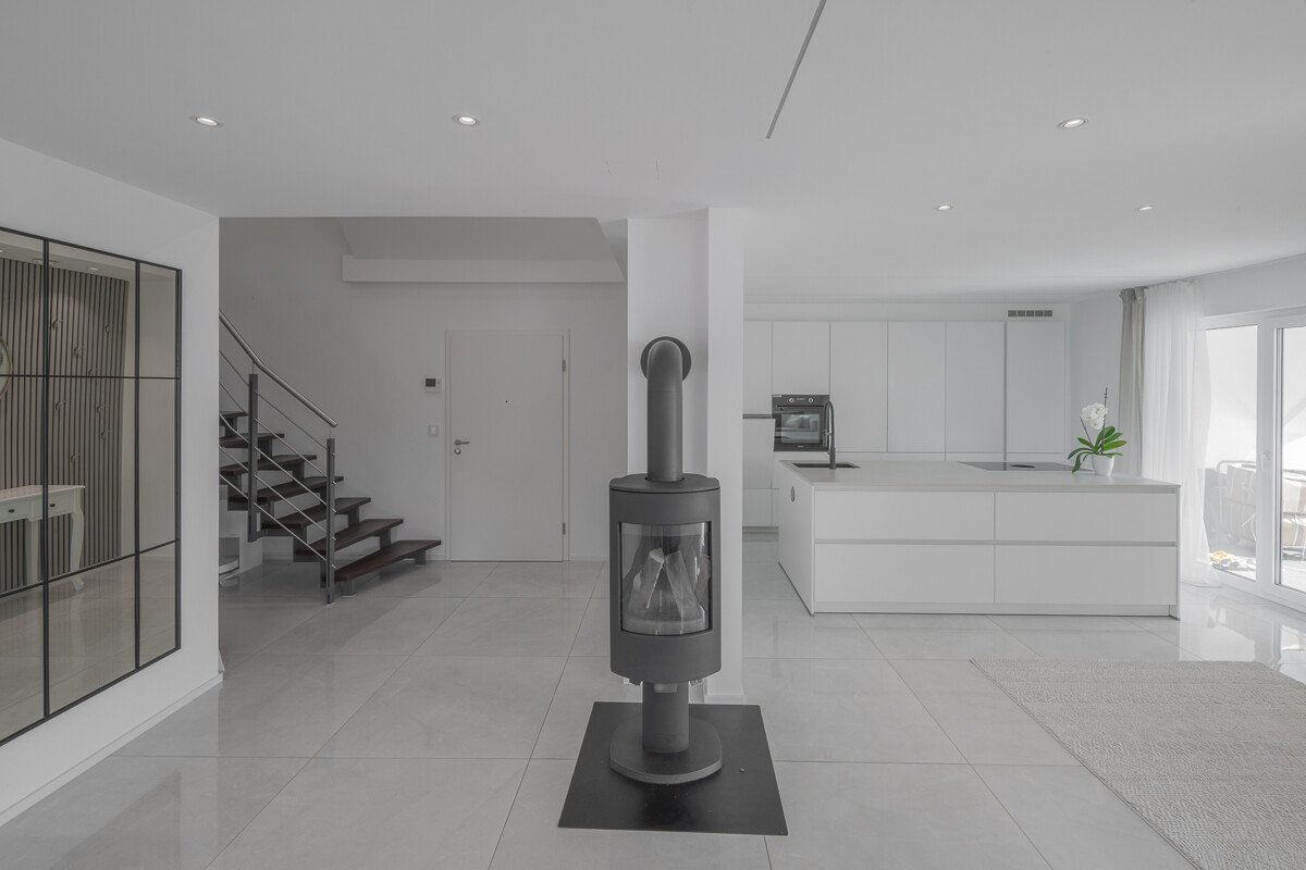 Die Anlage ist im KFW 55 Standard ausgestattet und verfügt über eine Tiefgarage, hier wird ein Tiefgaragenstellplatz für € 22.500,00 zusätzlich verkauft, ein Aussenstellplatz wäre für € 9.900,00 zusätzlich zu erwerben. Das Wohnhaus ist mit einem Aufzug ausgestattet, welcher vom Untergeschoß bis in die oberste Etage führt. Die Wohnung verfügt über Fußbodenheizung und Smart Home Technologie.