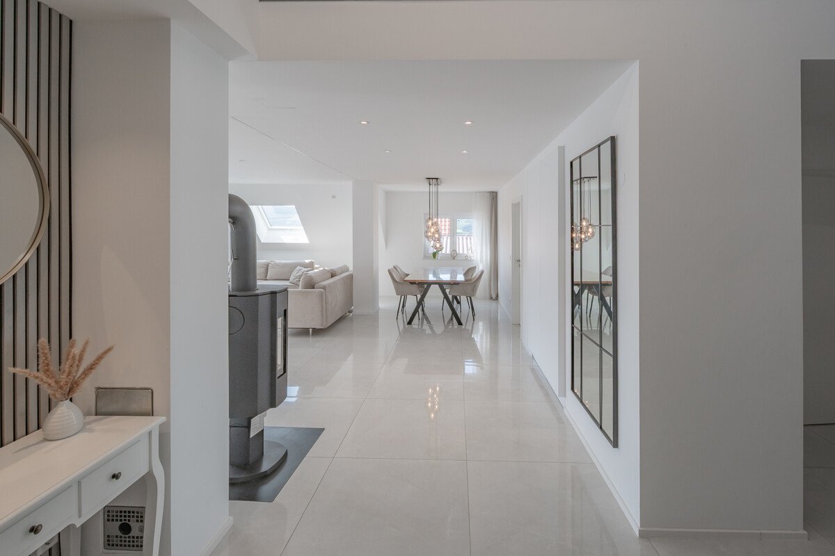 Das enorme Penthouse erwartet Sie auf zwei Ebenen mit viel Charme und Schick.