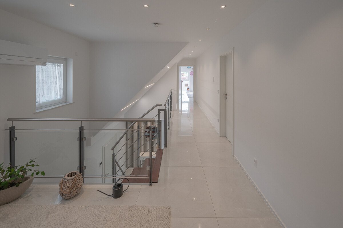 Auf der ersten Ebene erwartet Sie die großzügige Küche, Wohnzimmer, Arbeitszimmer und die großzügige Terrasse. Die zweite Ebene verfügt über zwei Kinderzimmer, ...mehr lesen
