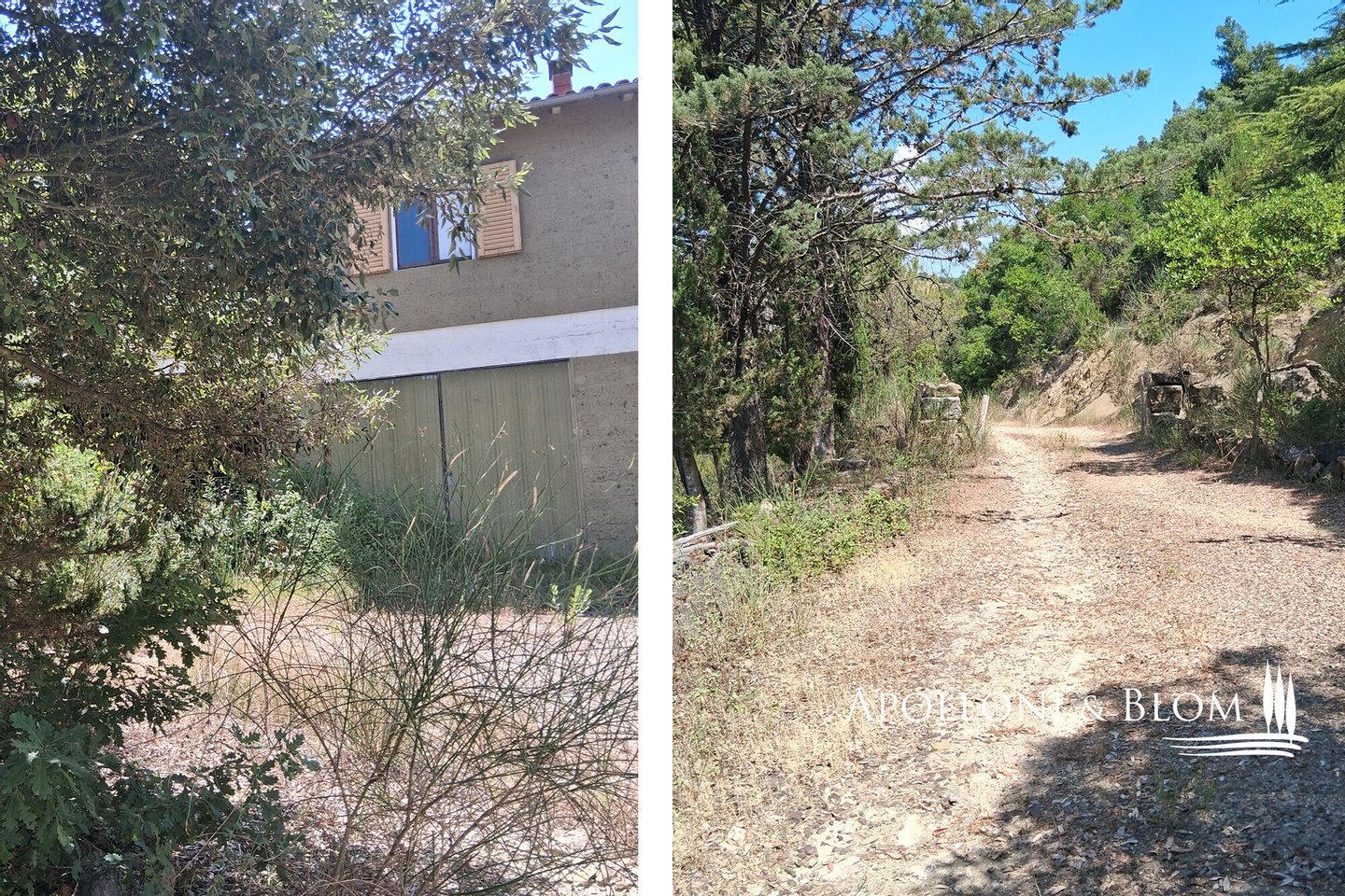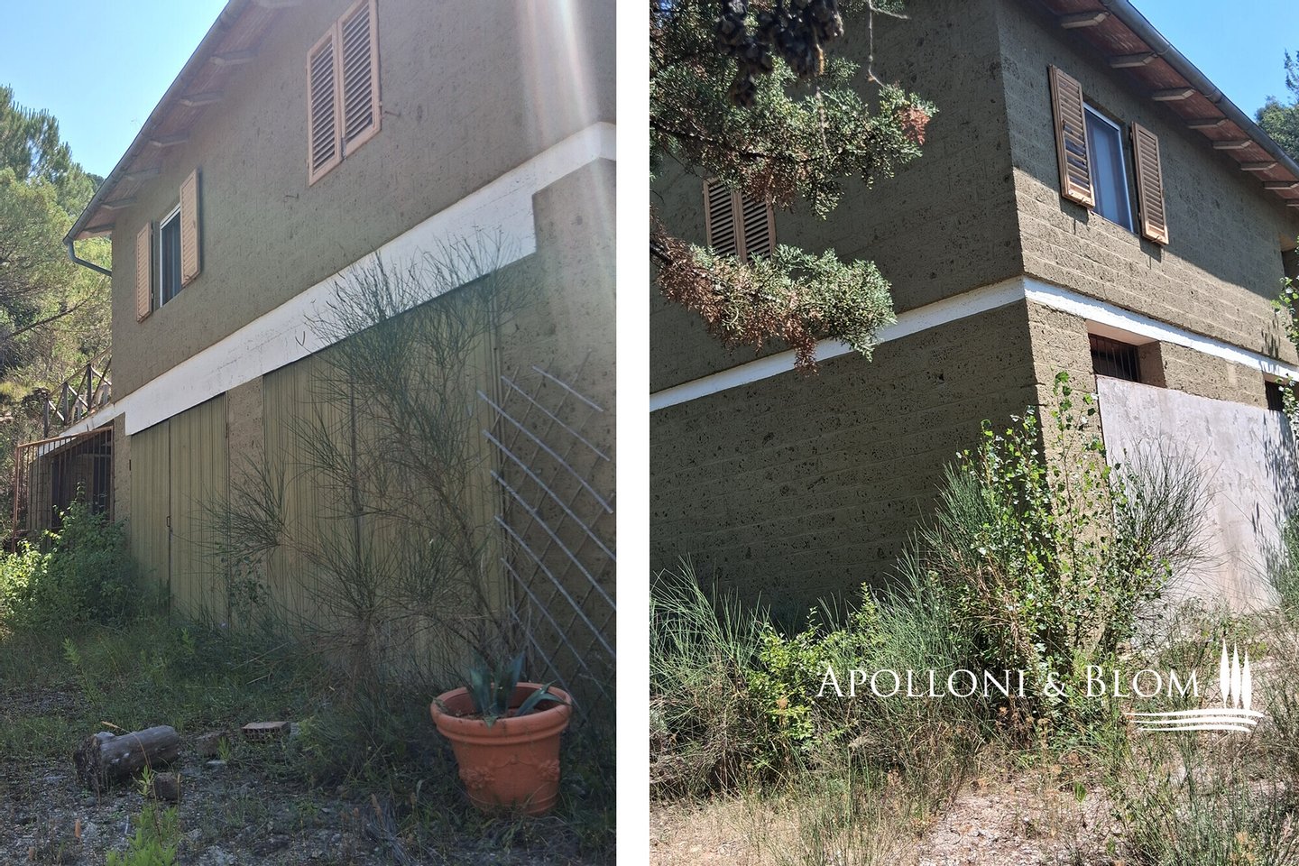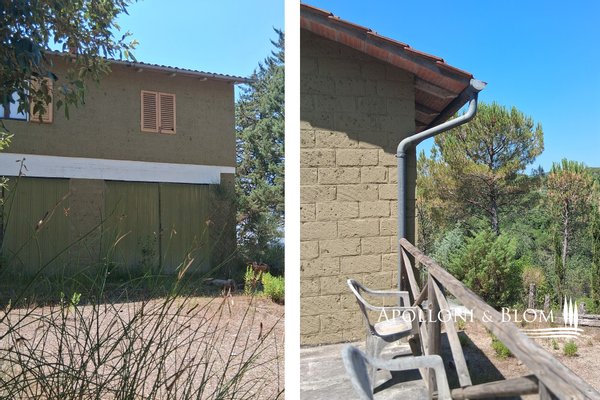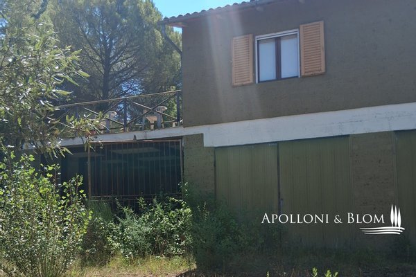 Typ: 267 m² großes Gebäude auf zwei Ebenen, das restauriert und umgebaut werden soll, mit Gartenbereich und 7,8 Hektar landwirtschaftlicher Fläche mit Weinberg und Olivenhain