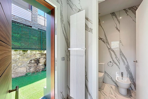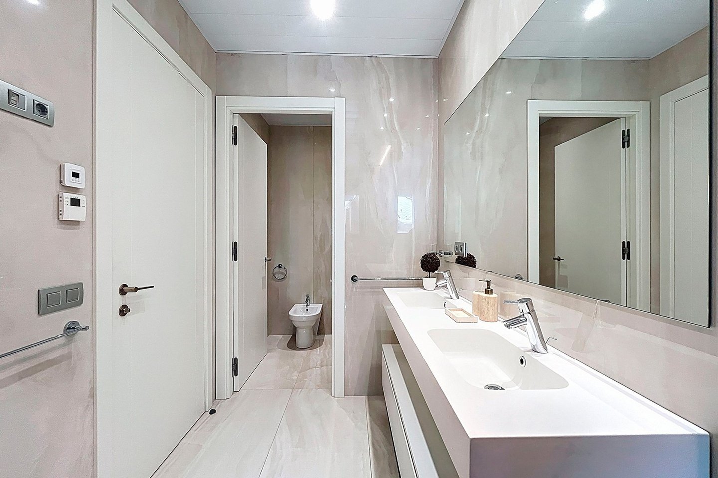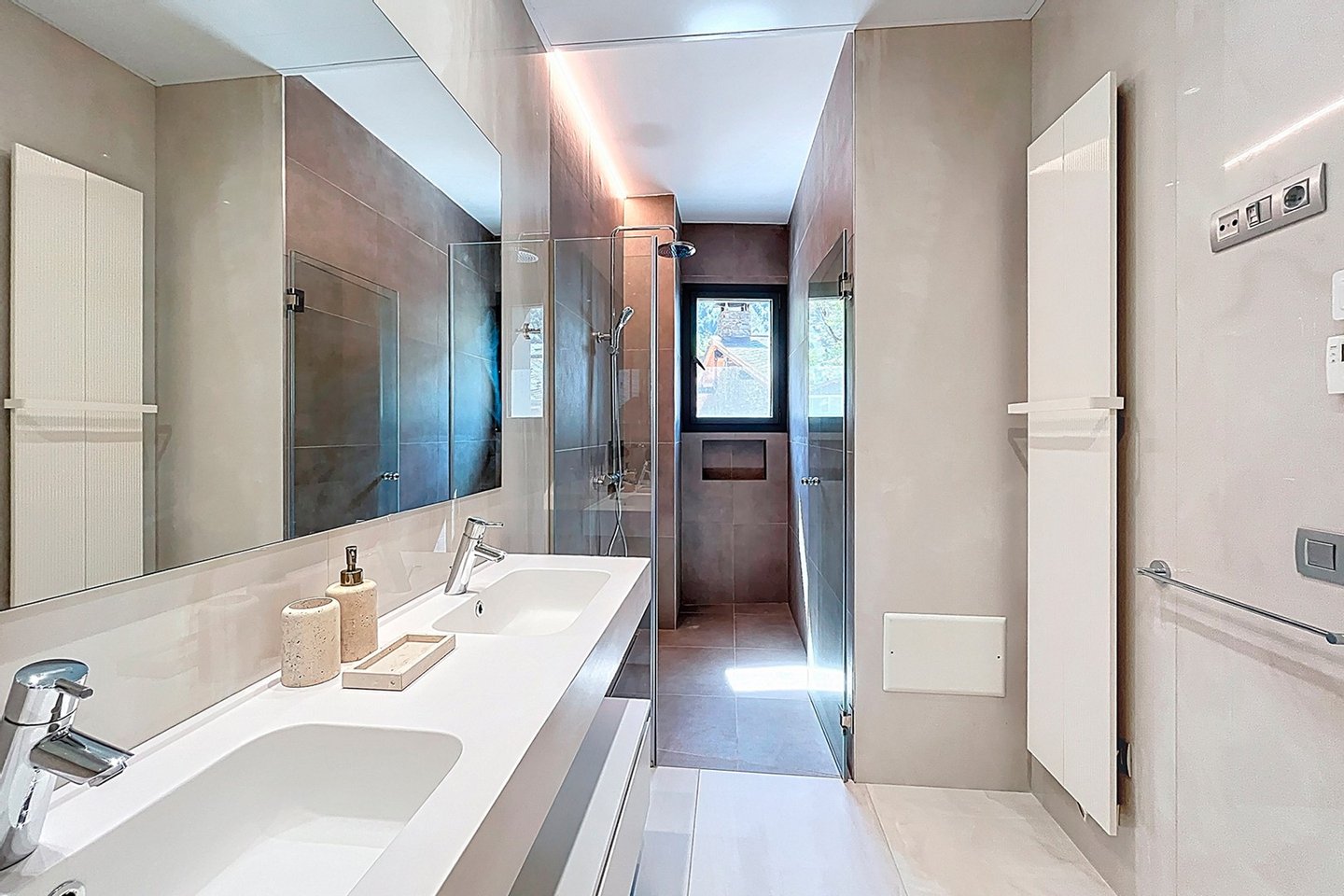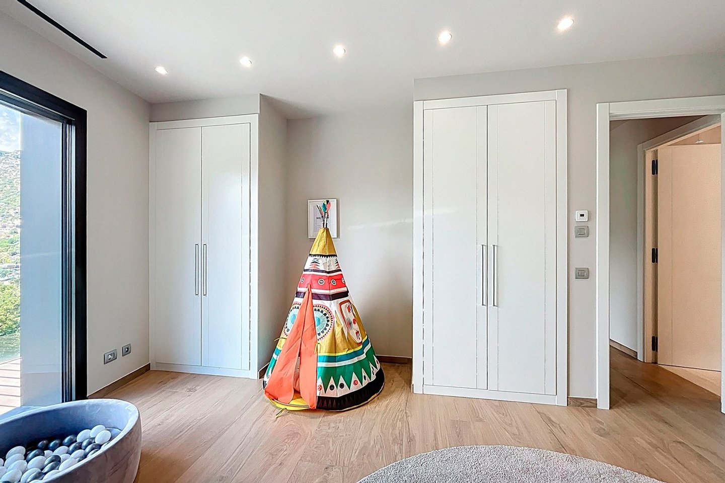 Die Master-Suite im zweiten Stock umfasst einen begehbaren Kleiderschrank, zwei Badezimmer (jeweils eines für jeden Nutzer), fortschrittliche Technologien, Hydromassage-Duschen und eine Badewanne mit Aussicht, sowie eine große private Terrasse.