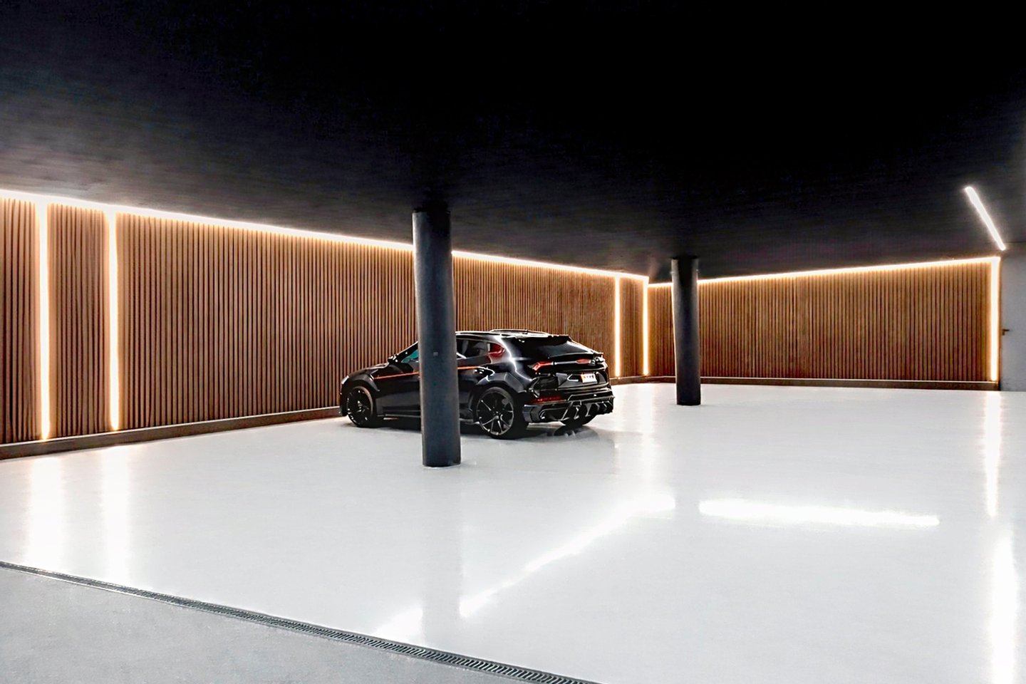 Die Garage im Keller -3 bietet Platz für bis zu 10 Fahrzeuge und verfügt über Wassertanks, einen Geräteraum und ein Gästebad.