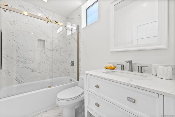 Moderner, minimalistischer Luxus im Herzen von Uptown! In perfekter Lage in einem der lebendigsten und begehrtesten Viertel von San Diego, Marston Hills, kombiniert diese neu erbaute, minimalistisch inspirierte Residenz anspruchsvolles Design mit der Ruhe einer üppigen, von Bäumen gesäumten Grüngürtel-Kulisse. Im Inneren bietet ein eleganter und flexibler Grundriss sowohl Privatsphäre als auch Vielseitigkeit - mit einer luxuriösen Hauptsuite, zwei übergroßen Schlafzimmern mit Bad, zwei WCs und einem speziellen Flex-/Bürobereich, der sich zu einer sonnenverwöhnten Dachterrasse mit herrlichem Blick auf die Baumkronen öffnet. Hohe Decken, breite Eichenböden und von Designern kuratierte Oberflächen schaffen eine warme, raffinierte Atmosphäre mit natürlichem Licht. Die Küche des Küchenchefs im Herzen des Hauses beeindruckt mit Wikingergeräten, einer markanten Quarz-Wasserfallinsel und einem offenen Design, das sich ideal für die Unterhaltung oder den einfachen Alltag eignet. Die Hauptsuite bietet einen wahren Rückzugsort - komplett mit einer Spa-inspirierten Badewanne, einem großzügigen Kleiderschrank und einem privaten Balkon mit Blick auf ein Blätterdach aus alten Bäumen für seltene Ruhe in einer urbanen Umgebung. Treten Sie hinaus zu Ihrem privaten eingezäunten Hof, Ihrer überdachten Hafengarage für zwei Autos und den beruhigenden Klängen der Natur direkt hinter Ihrer Grundstücksgrenze. Von hier aus sind Sie nur wenige Minuten vom historischen Balboa Park, den Boutiquen von Hillcrest, den renommierten Restaurants, der Innenstadt und dem internationalen Flughafen San Diego entfernt. Ohne HOA und mit flexiblen Wohnmöglichkeiten vereint dieses Haus perfekt ein Gleichgewicht zwischen modernem Luxus, Verbindung zur Natur und urbanem Komfort - eine ideale Passform für diejenigen, die sowohl Stil als auch Lebensstil schätzen.