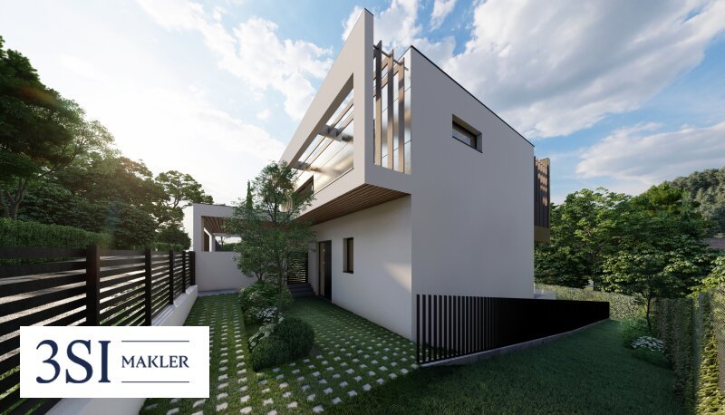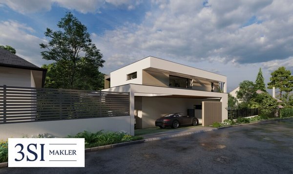 Die Villa überzeugt durch klare Linien und eine hochwertige Bauweise, die Eleganz und Beständigkeit verbindet. Der repräsentative Vorgarten, moderne Pflanzbeete und zwei Autoabstellplätze bilden den stilvollen Auftakt zu dieser besonderen Residenz.