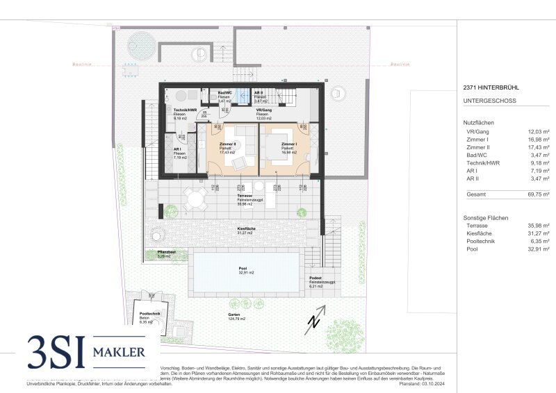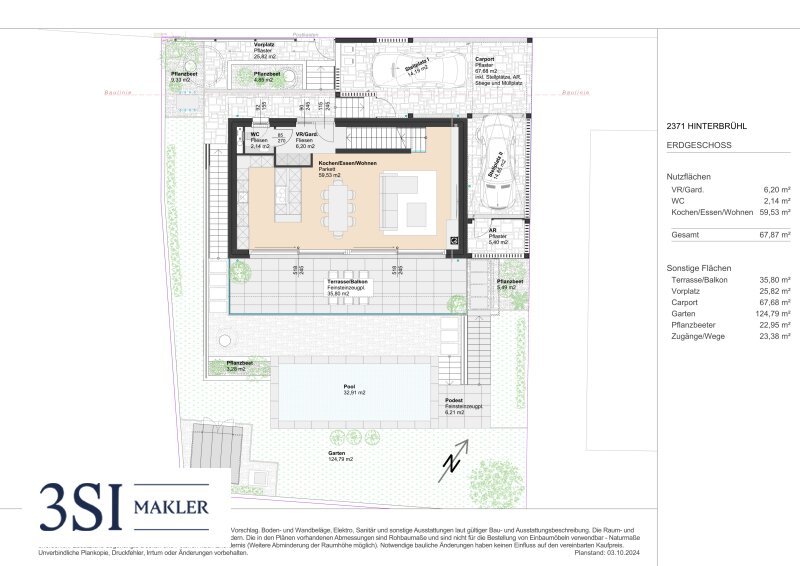 Der guten Ordnung halber halten wir fest, dass, sofern im Angebot nicht anders vermerkt, bei erfolgreichem Abschlussfall eine Provision anfällt, die den in der Immobilienmaklerverordnung BGBI. 262 und 297/1996 festgelegten Sätzen entspricht - das sind 3% des Kaufpreises zzgl. 20% MwSt. bzw. 2 Bruttomonatsmieten zzgl. 20% MwSt. Diese Provisionspflicht besteht auch dann, wenn Sie die Ihnen überlassenen Informationen an Dritte weitergeben. Die Vertragserrichtung und Treuhandabwicklung ist gebunden an eine noch zu nennende Kanzlei.
