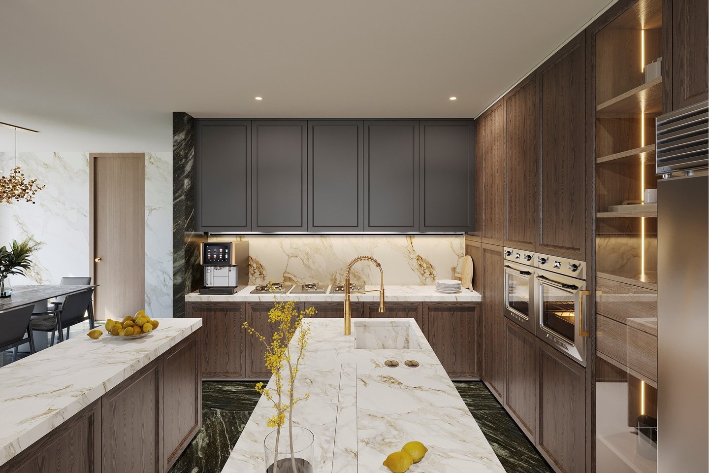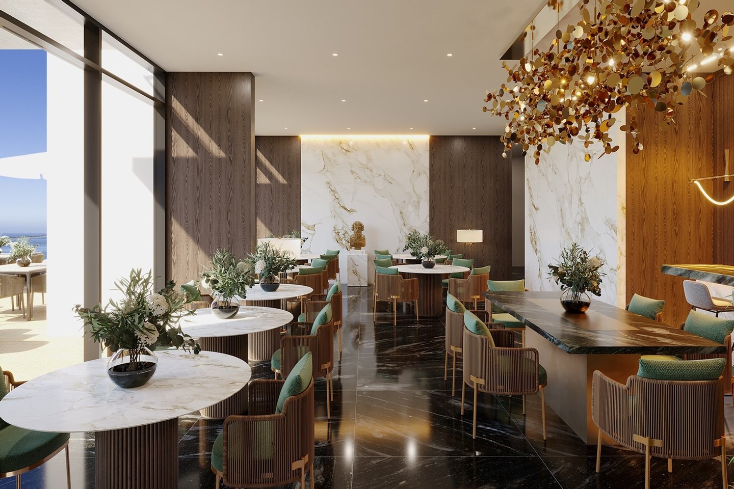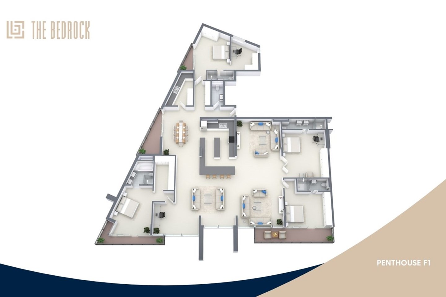 Das Penthouse F1 ist der Höhepunkt des luxuriösen Lebens an der Küste und bietet weitläufige Räume und unvergleichliche Eleganz. Diese exklusive Residenz verfügt über einen großen, offenen Wohnbereich mit zwei Lounges, einem Esszimmer und einer Kochküche, die mit hochwertigen Geräten und einer geräumigen Insel ausgestattet ist. Die Aufteilung umfasst drei luxuriöse Schlafzimmer, jedes mit eigenem Bad, sowie ein privates Arbeitszimmer für zusätzliche Vielseitigkeit.