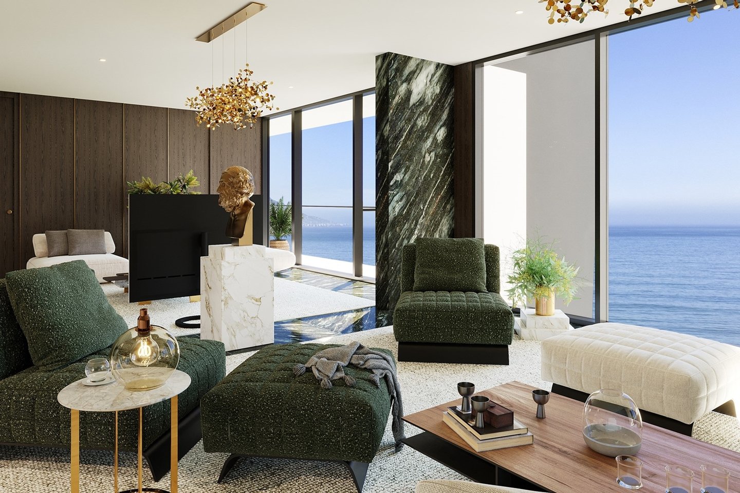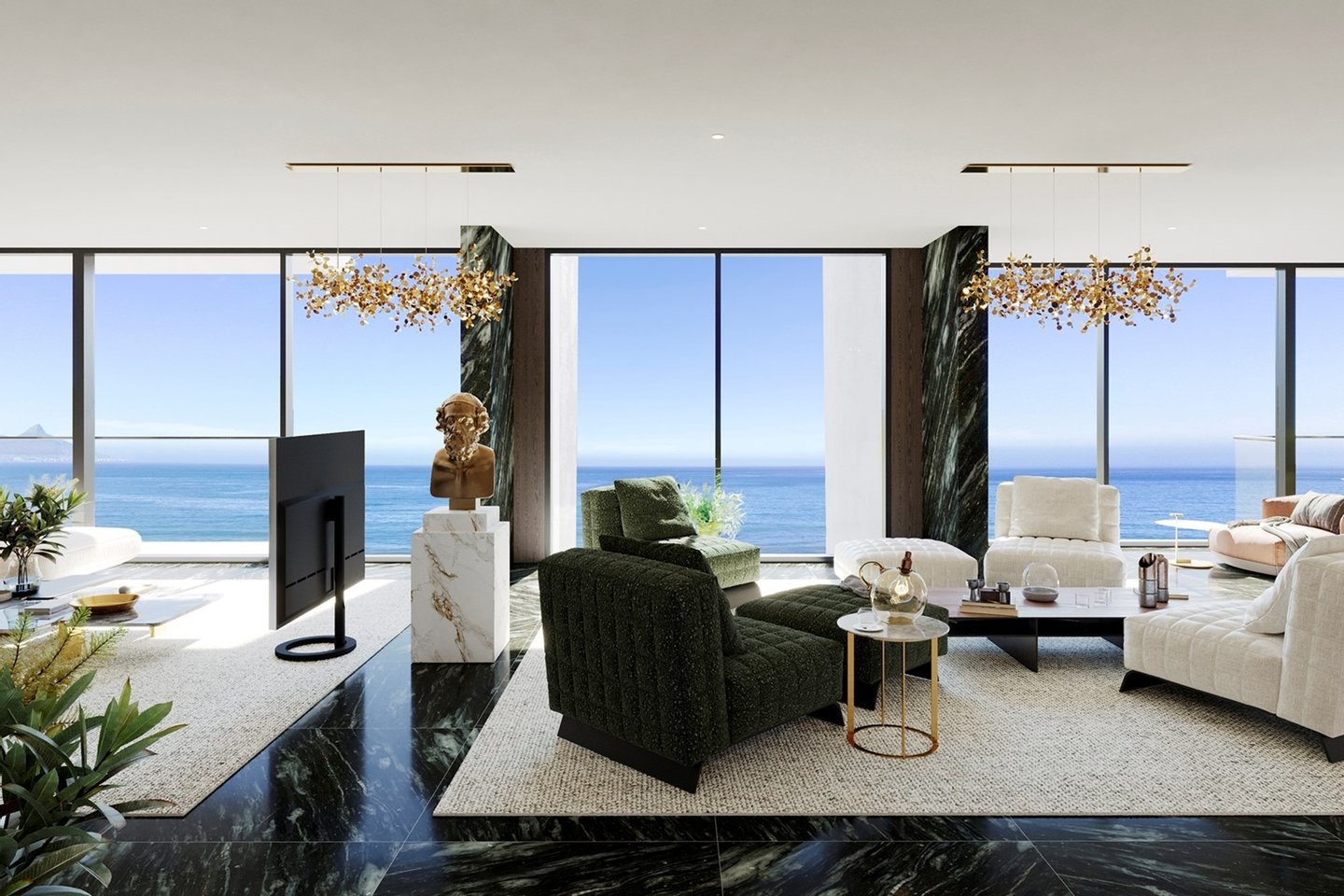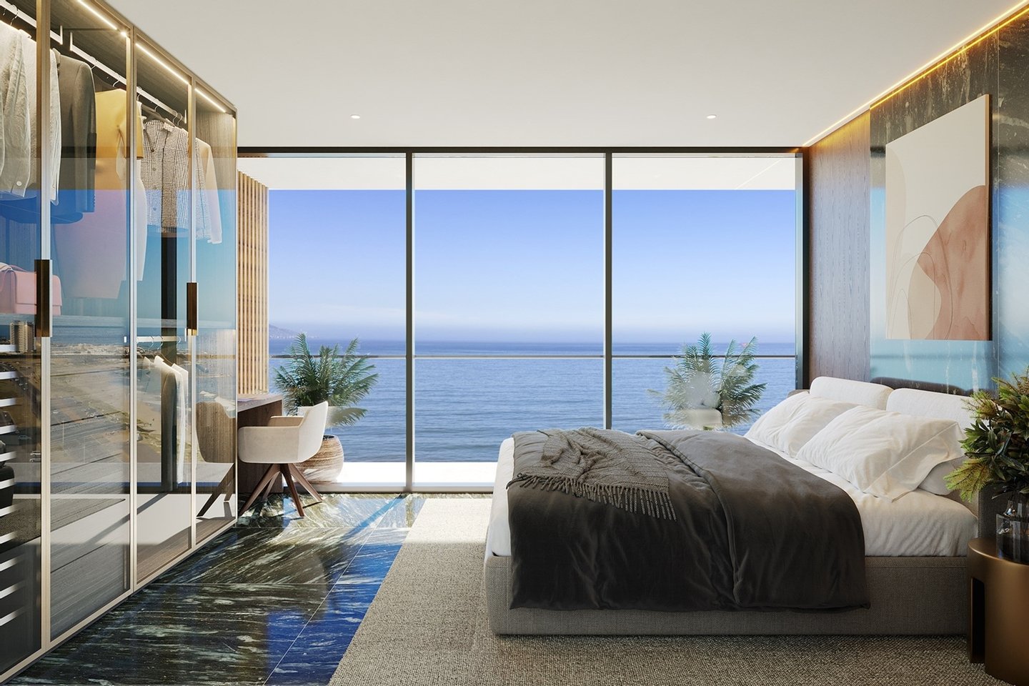 Das Penthouse F1 ist der Höhepunkt des luxuriösen Lebens an der Küste und bietet weitläufige Räume und unvergleichliche Eleganz. Diese exklusive Residenz verfügt über einen großen, offenen Wohnbereich mit zwei Lounges, einem Esszimmer und einer