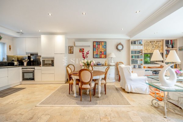Villa zum Verkauf in Sainte-Maxime. Im Herzen des Stadtzentrums, in der Nähe von Annehmlichkeiten und dem Strand, misst dieses herrliche Stadthaus ca. 118m². Es verfügt über eine Eingangshalle, ein Gäste-WC, ein geräumiges Wohnzimmer mit Zugang zu einer Terrasse, eine voll ausgestattete offene Küche und ein Schlafzimmer auf einer Ebene mit Duschbad und WC. Im Obergeschoss befinden sich drei Schlafzimmer mit jeweils einem Duschbad, einem Ankleidezimmer und einer Toilette. Es gibt auch ein separates Studio. Ein Swimmingpool mit Poolhaus ergänzt den wunderschön angelegten Garten.