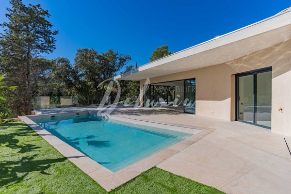 In der begehrten Wohngegend von Boulouris in Saint-Raphaël gelegen, vereint diese Villa im zeitgenössischen Stil Modernität, Eleganz und Komfort. Eingebettet in eine ruhige Umgebung, fernab von neugierigen Blicken, bietet es einen privilegierten und äußerst begehrenswerten Lebensstil an der Côte d'Azur. Diese im Jahr 2025 erbaute Immobilie profitiert von reduzierten Notargebühren sowie hochwertigen Oberflächen. Mit einer Fläche von ca. 200 m² wurde es so konzipiert, dass es großzügige Volumen und optimales Tageslicht bietet. Im Erdgeschoss öffnet sich der Eingang zu einem geräumigen 70 m² großen Wohnbereich mit offener Küche und angrenzender Speisekammer, der sich auf eine sonnige Terrasse mit Swimmingpool erstreckt. Auf dieser Ebene befinden sich auch zwei Schlafzimmer mit Bad, darunter eine 35 m² große Master-Suite, eine Waschküche, ein Gäste-WC und eine Doppelgarage. Auf der unteren Ebene sorgen zwei weitere Schlafzimmer mit jeweils eigenem Duschbad sowie eine separate Toilette für Komfort und Privatsphäre für Familie oder Gäste. Die Villa befindet sich auf einem landschaftlich gestalteten Grundstück von 1.534 m² und bietet auch einen Pétanque-Platz für Momente der Geselligkeit. Dieses moderne Haus mit Pool in Saint-Raphaël wird Liebhaber von modernem Design und Ruhe begeistern, während es die Nähe zu den Stränden und Annehmlichkeiten von Boulouris genießt. Wenden Sie sich noch heute an DELUXIA, Ihre Immobilienagentur in Saint-Raphaël, um weitere Informationen zu erhalten.