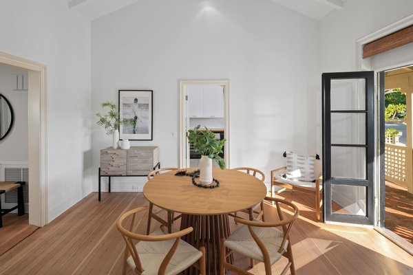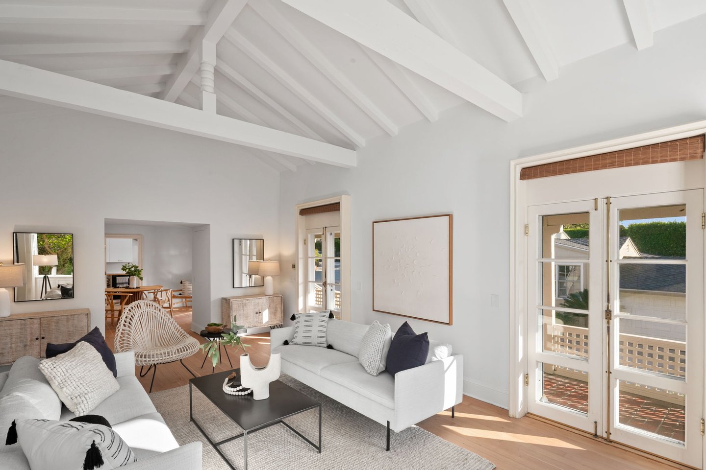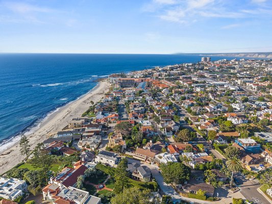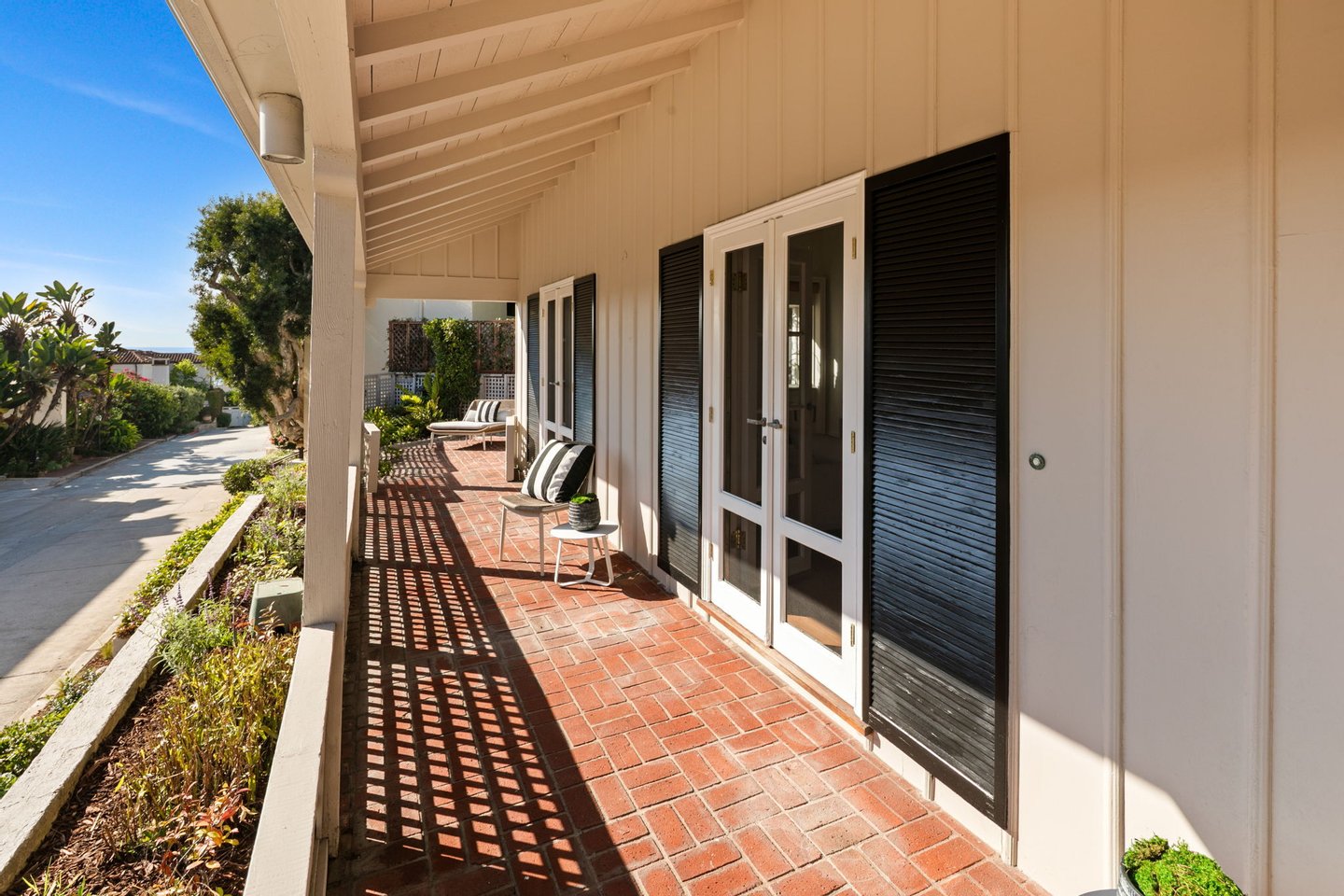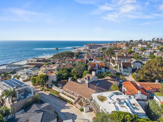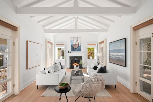 Dieser schöne und seltene Coastal California Charmer in the Beach and Barber Tract befindet sich in einem der begehrtesten Viertel von La Jolla, nur wenige Schritte vom Meer entfernt. Die Liebe zum Detail findet sich in den originalen, neu lackierten Parkettböden, die durch einen großen Kamin an den hohen Decken der Kathedrale mit freiliegenden Dachstühlen und zahlreichen Fenstern und Türen für ein lichtdurchflutetes, sonniges Zuhause verankert sind. Das Bonuszimmer im Obergeschoss öffnet sich zu einem Dachbalkon mit Blick auf das Meer und den Sonnenuntergang, während eine Vielzahl von Terrassenbereichen und eine einladende Veranda zum Wohnen im Innen- und Außenbereich einladen. Genießen Sie das private, eingezäunte Grundstück mit seinen von alten Bäumen umgebenen Backsteinhöfen - ideal für Mahlzeiten im Freien oder zum ruhigen Entspannen, nur wenige Minuten von La Jollas weltberühmtem Einkaufsviertel mit weißen Sandstränden und Surfen vor Ihrer Haustür entfernt.