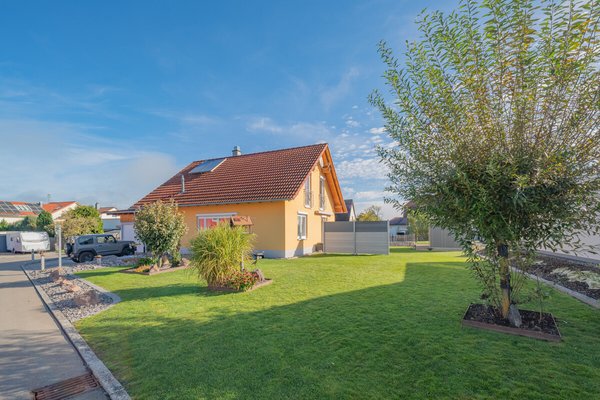 Dieses charmante Einfamilienhaus befindet sich in einer äußerst ruhigen Sackgassenlage in Donaueschingen-Neudingen und bietet eine perfekte Kombination aus modernem Wohnkomfort und naturnahem Leben eingebettet in ein sehr gepflegtes Umfeld in dem sich besonders Familien mit Kindern wohlfühlen werden das 2008 erbaute Fertighaus der renommierten Firma DIGA BAU überzeugt durch eine zeitgemäße Architektur und eine großzügige durchdachte Raumaufteilung auf einer Wohnfläche von 133 m² bietet das Haus viel komfortable Fläche. Das Grundstück umfasst insgesamt 642 m² und bietet somit viel Raum. Es liegt in einer ruhigen Sackgasse mit Ruhe und familiären Umfeld. .