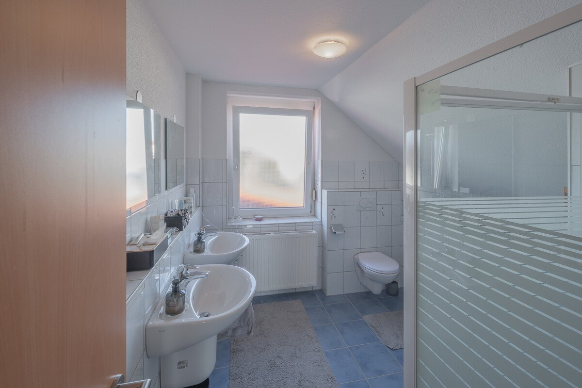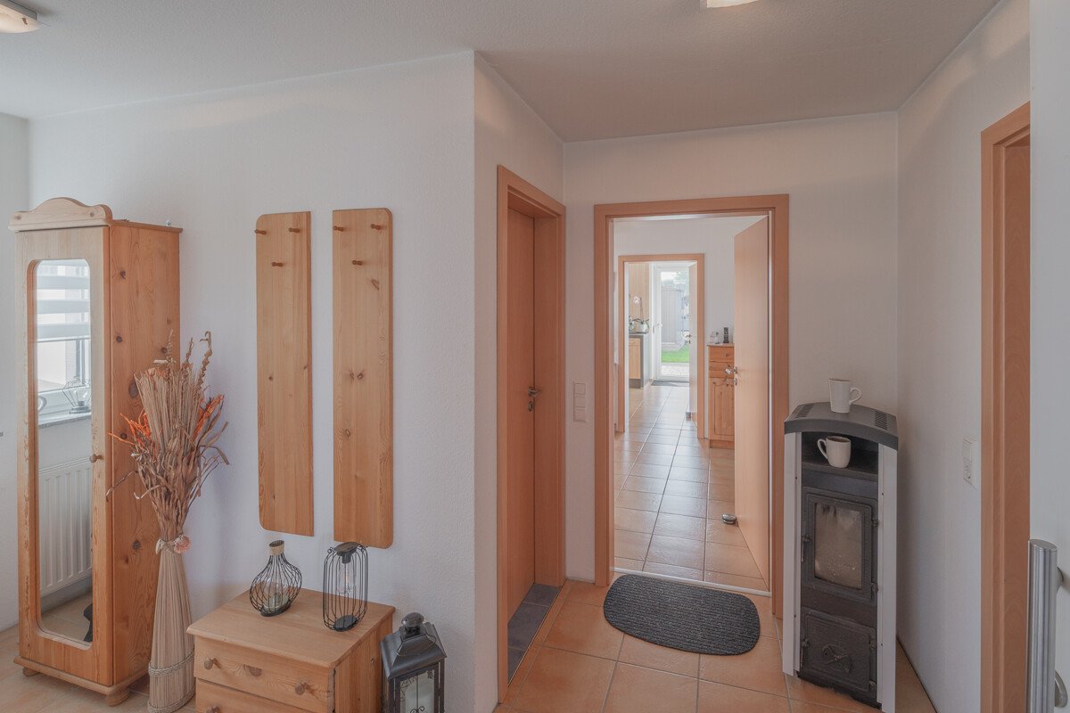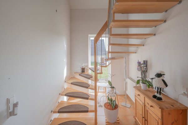 Beim Betreten des Hauses empfängt Sie eine helle offene und großzügig gestaltete Eingangshalle das gesamte Erdgeschoss ist lichtdurchflutet und überzeugt durch eine harmonische zeitlose Gestaltung die moderne Küche ist funktional und gut ausgestattet und geht nahtlos in den großzügigen Wohn- und Essbereich über von hier haben Sie direkten Zugang zu dem liebevoll angelegten Garten der viel Platz zum Spielen Entspannen und Genießen bietet ein Schwedenofen sorgt in den Wintermonaten für eine angenehme Wohlfühlatmosphäre. Das Erdgeschoss verfügt zudem über ein großzügiges Gäste-WC sowie einen praktischen Hauswirtschaftsraum das Obergeschoss bietet drei helle und gut geschnittene Schlafzimmer die individuell genutzt werden können sei es als Kinderzimmer Arbeitszimmer oder als Elternschlafzimmer das große Tageslichtbad mit Badewanne und Dusche ist modern und einladend neben einer geräumige und einladend. Neben einer geräumigen Garage und einem Carport ist viel Platz für den Fuhrpark vorhanden. Dieses Haus bietet eine ideale Grundlage für eine glückliche Familie die sich ein modernes gepflegtes und ruhiges Zuhause wünscht lassen Sie sich diese Gelegenheit nicht entgehen und vereinbaren Sie noch heute einen Besichtigungstermin.