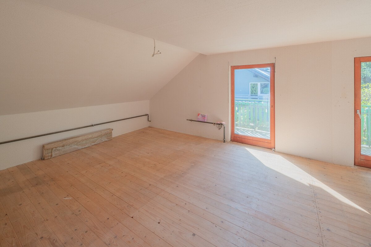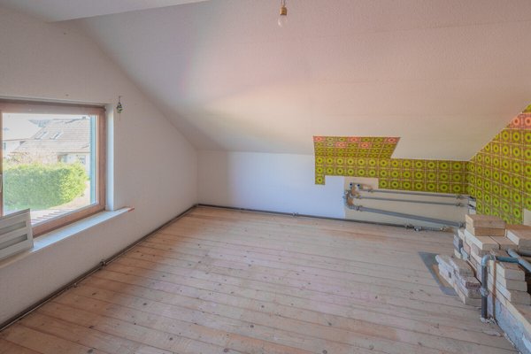 Das Rohbauhaus liegt freistehend und sonnig am Ortsrand. Das unbeheizte Einfamilienhaus verfügt über eine 4,5 Zimmer Wohnung im Erdgeschoß und eine 2,5 Zimmer Wohnung im Dachgeschoß.