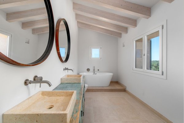 Im Obergeschoss erwarten Sie 3 weitere Schlafzimmer mit Bad en Suite sowie ein zusätzlicher Wohnbereich. Zwei Schlafzimmer verfügen über Zugang zu einer privaten Terrasse mit traumhaftem Ausblick bis zum Meer.