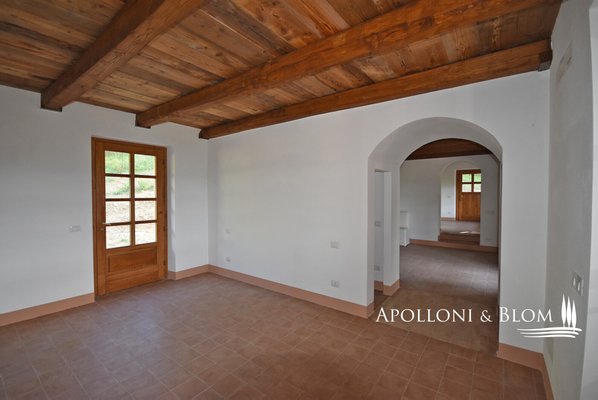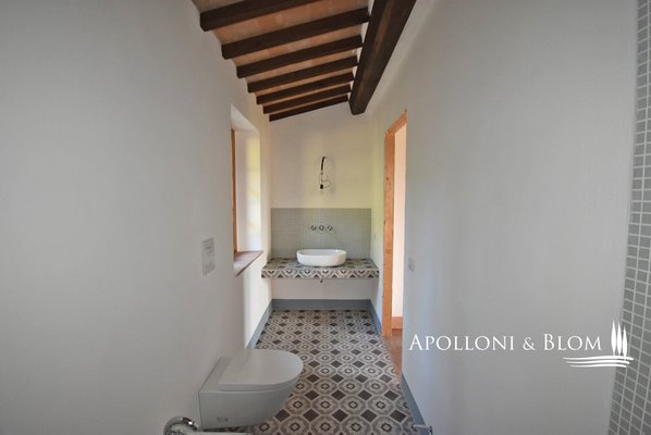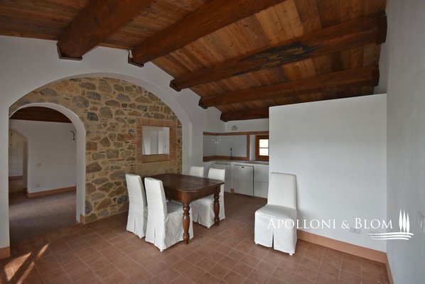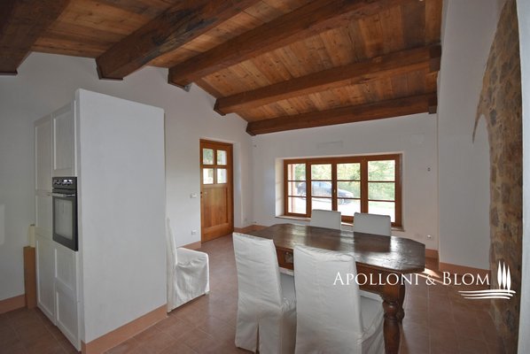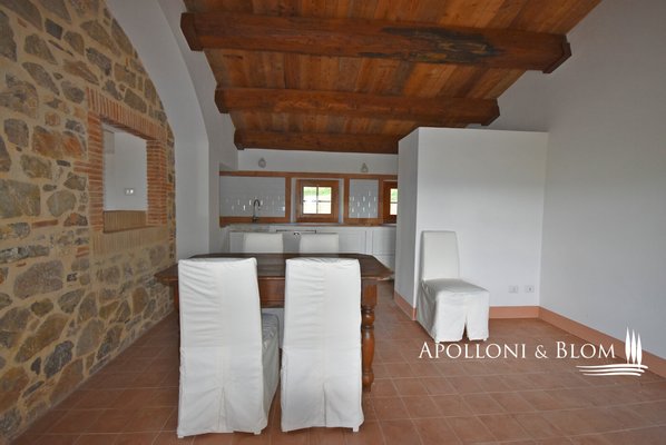 Auf dem Land in der Nähe von Sorano, inmitten von Wäldern und der toskanischen Landschaft, steht ein wohnfertiges Bauernhaus aus Stein mit großer Veranda und Garten zum Verkauf. Eingebettet in die Ruhe der Maremma-Landschaft wurde dieses Bauernhaus aus Stein mit einer Fläche von ca. 147,5 m² vor kurzem mit großer Sorgfalt renoviert und verbindet den authentischen Charme der toskanischen Tradition mit modernem Komfort. Am Eingang empfängt Sie ein 28 Quadratmeter großer Portikus, der Sie in den Wohnbereich führt und einen idealen Platz für entspannende Momente im Freien inmitten der Natur bietet. Im Erdgeschoss schließen sich die Räume des Wohnbereichs harmonisch aneinander an und sind durch bogenförmige Öffnungen verbunden, die typisch für die ländliche Tradition sind. Holzdecken mit sichtbaren Balken sorgen für Wärme und Gemütlichkeit, während Terrakottaböden und Steinmauern Charakter und Authentizität verleihen. Das Wohnzimmer wird von einem Steinkamin dominiert, dem Herzstück des Hauses. Die gemauerte Küche mit antiker Steinspüle öffnet sich zum Essbereich hin und schafft eine gesellige und funktionelle Umgebung. Das Stockwerk wird durch ein Arbeitszimmer, ein Bad mit Dusche und einen Technikraum vervollständigt. Im ersten Stock führt die Innentreppe mit Ziegelgewölbe zu den beiden Schlafzimmern, beide mit eigenem Bad. Die Kombination aus Holzbalken und freiliegenden Terrakotta-Ziegeln an den Decken verleiht dem Haus ein warmes, rustikales und authentisches Flair. Die Zimmer sind hell und einladend und mit maßgefertigten Schränken ausgestattet, die Funktionalität und Eleganz perfekt miteinander verbinden. Alle Fenster- und Türrahmen sind aus Massivholz und haben Doppelverglasung, während die Heizungsanlage mit Warm-/Kaltluftgebläse für die Installation einer Photovoltaikanlage vorbereitet ist. Im Außenbereich bieten der noch zu vervollständigende Garten und der bereits für eine Photovoltaikanlage vorbereitete Carport reichlich Raum für individuelle Gestaltung. Das Grundstück ist privat und abgelegen, umgeben von Wäldern, Landschaften und sanften Hügeln, obwohl es weniger als einen Kilometer von Montebuono entfernt ist, das mit anderen Häusern bebaut ist. Das mittelalterliche Dorf Sorano, nur 13 km entfernt, bezaubert mit seinen gepflasterten Straßen, Türmen und alten Mauern und bietet Geschäfte, Cafés und Restaurants. Dieses Bauernhaus ist ideal für diejenigen, die inmitten der unberührten Natur leben möchten, in einem Haus, das Eleganz, Geschichte und die authentische Atmosphäre der ländlichen Toskana vereint.