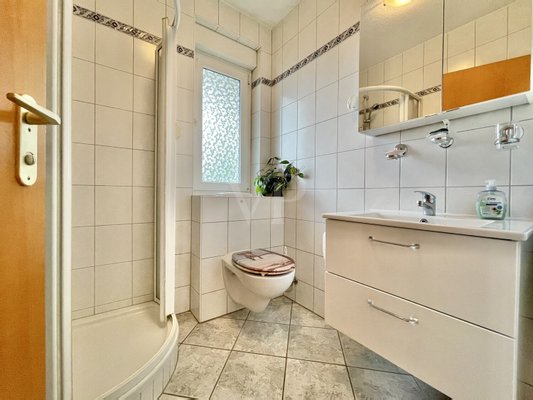 Im Obergeschoss befinden sich drei weitere Zimmer, die flexibel als Schlaf-, Kinder- oder Hobbyräume genutzt werden können. Ein großzügiges Bad mit Dusche und Badewanne sorgt hier für Komfort und Entspannung nach einem langen Tag.