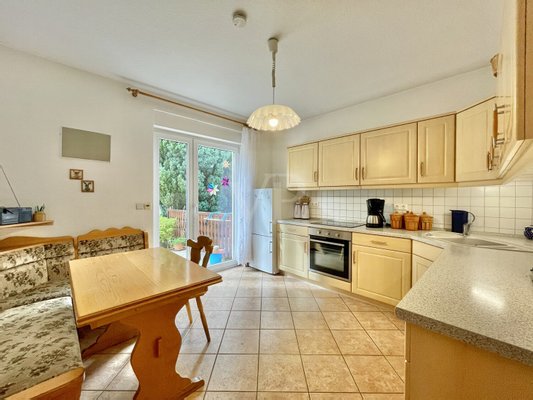 Im Erdgeschoss erwartet Sie ein gemütliches Zimmer, ideal als Arbeits- oder Gästezimmer, sowie ein großzügiges Wohnzimmer, das zum Entspannen und Verweilen einlädt. Die separate Küche, von der aus Sie direkten Zugang zur sonnigen Terrasse haben, bietet ausreichend Platz für kulinarische Aktivitäten, während ein praktischer Abstellraum für Ordnung sorgt. Ein geschmackvolles Badezimmer mit allen notwendigen Annehmlichkeiten rundet das Erdgeschoss ab.