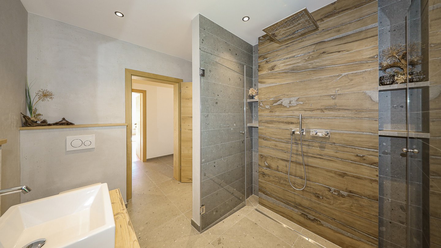 Zwei weitere Schlafzimmer und ein Bad mit Dusche, Waschtisch, WC und Fenster komplettieren das hochwertige Penthouse.