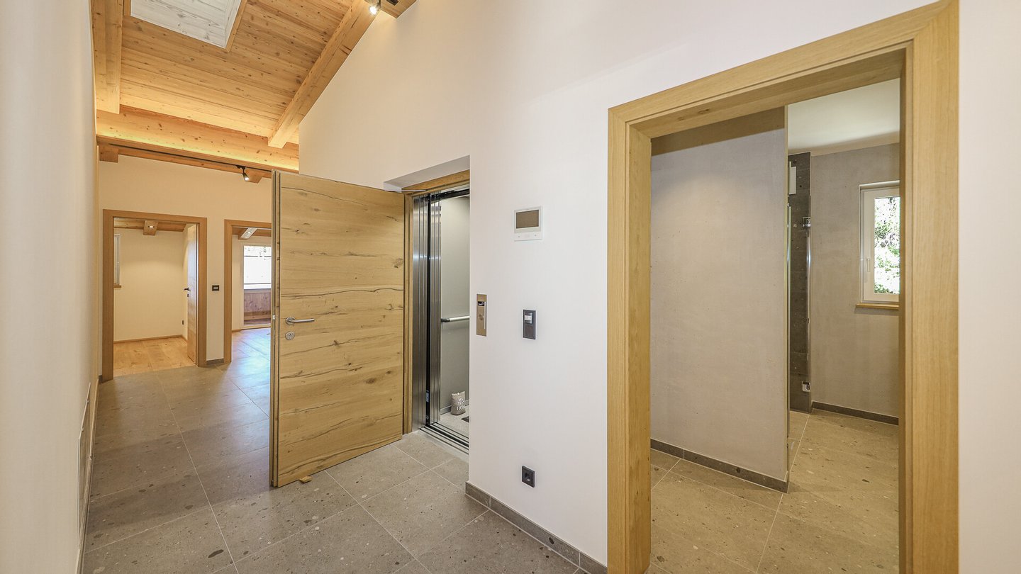 Im Obergeschoss befindet sich der Eingang in das Penthouse und die Diele. Über eine innenliegende Treppe gelangt man sodann in das Dachgeschoss. Mit dem Lift gelangt man ebenfalls direkt in das Penthouse.