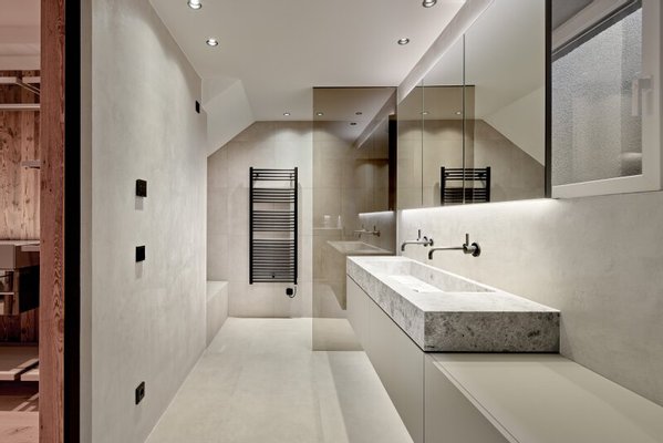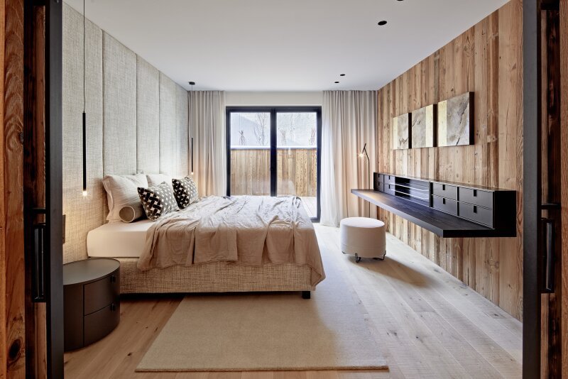 Die gemütliche Gartenwohnung ist als Maisonette ausgebaut und umfasst einen Teil des Erdgeschosses und des weitläufig ausgekragten Terrassengeschosses. Über den Eingangsbereich mit Diele, Garderobe und Gästetoilette kommt man in den lichtdurchfluteten Wohn-Essbereich mit offenem Kamin und maßgefertigter Küche. Flankiert wird diese Ebene vom pflegeleichten Garten. Auf der Terrassenebene befinden sich zwei Schlafzimmer jeweils mit Ankleide und Bad en suite, ein Wellnessraum mit Sauna und Relaxliegen sowie der Hauswirtschaftsraum.