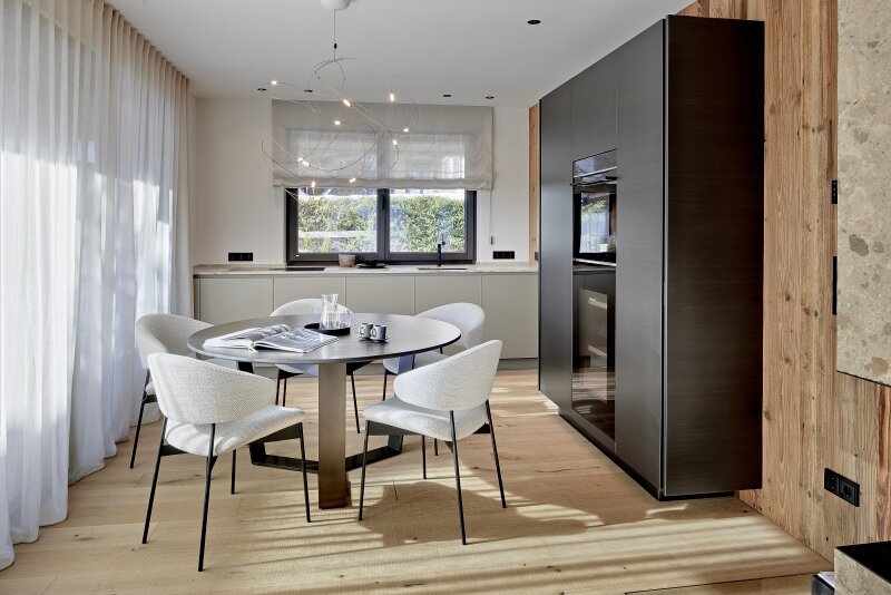 Die hochwertige Ausstattung ist zeitlos, die gewählten Materialien und Farben wirken elegant und lassen Spielraum für persönliche Akzente. Die Haustechnik bietet eine umweltfreundliche Fußbodenheizung mittels Erdwärme, eine kontrollierte Wohnraumbelüftung, ein BUS-System, das auch über Smartphone und Tablett angesteuert werden kann uvm.