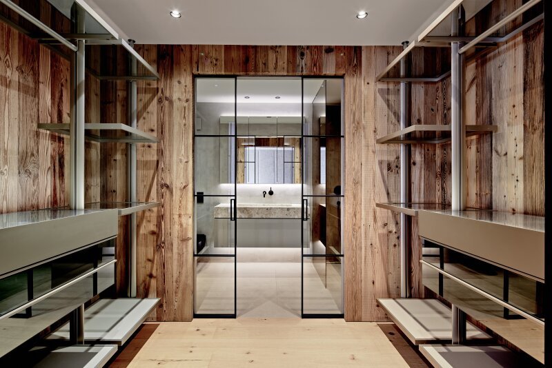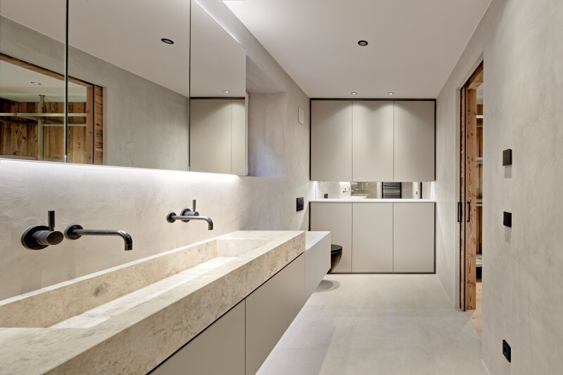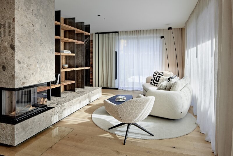 Die gemütliche Gartenwohnung ist als Maisonette ausgebaut und umfasst einen Teil des Erdgeschosses und des weitläufig ausgekragten Terrassengeschosses. Über den Eingangsbereich mit Diele, Garderobe und Gästetoilette kommt man in den lichtdurchfluteten Wohn-Essbereich mit offenem Kamin und maßgefertigter Küche. Flankiert wird diese Ebene vom pflegeleichten Garten. Auf der Terrassenebene befinden sich zwei Schlafzimmer jeweils mit Ankleide und Bad en suite, ein Wellnessraum mit Sauna und Relaxliegen sowie der Hauswirtschaftsraum.
