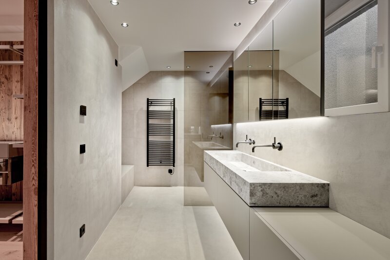 Die hochwertige Ausstattung ist zeitlos, die gewählten Materialien und Farben wirken elegant und lassen Spielraum für persönliche Akzente. Die Haustechnik bietet eine umweltfreundliche Fußbodenheizung mittels Erdwärme, eine kontrollierte Wohnraumbelüftung, ein BUS-System, das auch über Smartphone und Tablett angesteuert werden kann uvm.