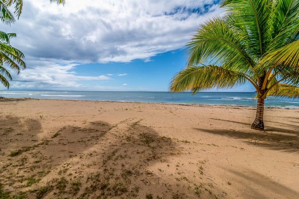 Schauen Sie sich die Fotos dieser Strandvilla an. Der Strand vor Ihnen ist wirklich schön und hat ruhige Wellen, perfekt für ein Bad im Meer.