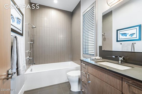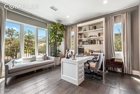Ein unglaubliches französisches modernes Anwesen vor den Toren des Sherwood Country Club - wo episches Design auf herausragenden Luxus trifft. Diese 2018 erbaute und 6.172 m² große Vorzeigeresidenz bietet 5 Schlafzimmer, 4,5 Bäder, eine Lounge im Loft-Stil und ein sensationelles Great Room mit Schiebetüren, die für ein nahtloses Wohnen im Innen- und Außenbereich verschwinden. Eine auffällige, maßgefertigte Lichtinstallation schwebt wie Kunst über die Decke und gibt den Ton für die außergewöhnlichen Oberflächen und Designdetails des Hauses an. Entworfen von Cari Berg Interior Design, strahlt jeder Raum moderne Raffinesse aus - von den gepolsterten Wänden in der Hauptsuite und im Büro bis hin zu Seiden- und Wildledertapeten, edlen Holz- und Schieferböden, motorisierten Vorhängen und maßgefertigten Einbauten. Die spektakuläre Küche des Küchenchefs öffnet sich direkt zum Großen Saal und schafft den ultimativen Raum für Zusammenkünfte und den Alltag. Ausgestattet mit erstklassigen Geräten, maßgefertigten Schränken und einer großen Mittelinsel ist es ebenso funktional wie schön. Auf der Hauptebene befindet sich auch ein privates Büro, das sich perfekt für die Arbeit von zu Hause aus eignet - und eine komfortable Höhle, die sich ideal für einen Medienraum, eine Bibliothek oder einen Spielbereich eignet. Ein formelles Esszimmer mit Kamin öffnet sich direkt zum Hinterhof und schafft einen mühelosen Fluss für die Unterhaltung. Im Obergeschoss ist die Hauptsuite ein wahres Refugium mit einer Spa-inspirierten Badewanne und einer ruhigen Atmosphäre, die zum totalen Entspannen einlädt. Der Hinterhof im Resort-Stil ist die nächste Stufe - mit einem glitzernden Pool und Spa, einer Feuerstelle, einem eingebauten Grill, einem überdachten Wohnzimmer im Freien und einem riesigen Rasen, der in üppige Landschaftsgestaltung für absolute Privatsphäre gehüllt ist. Voll ausgestattet mit fortschrittlicher Hausautomation und einer geräumigen Garage für 3 Autos, bietet dieses Haus modernsten Komfort mit atemberaubendem Stil. Das Hotel liegt in einer der renommiertesten Gemeinden Südkaliforniens, mit Zugang zum Lake Sherwood und optionaler Mitgliedschaft in zwei Elite-Country-Clubs.